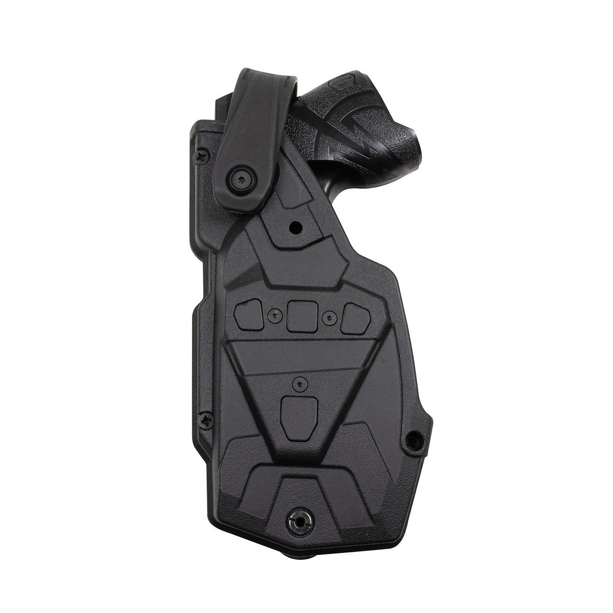 Holster noir en polymère injecté de Niveau II qui est conçu pour le TASER X2.