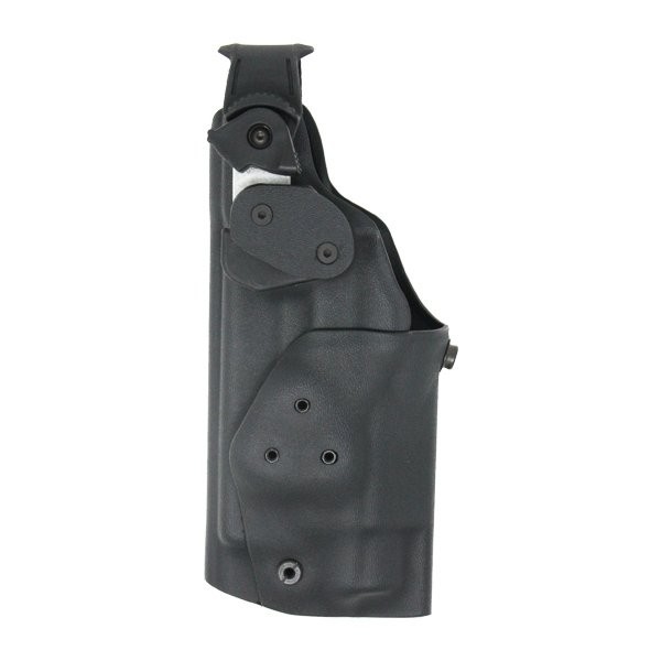 Un étui de transport en polyform de niveau 3 pour GLOCK 17 équipé d’une lampe TLR2. Un appui du pouce libère la sécurité pour extraire l’arme de l’étui après avoir déverrouiller le blocage. Caractéristiques: 3 niveaux de rétentions Sureté manuelle: LL Lock-Loop Sureté: STR System Port System Multilink pour les accessoires en option Disponible en droitier ou gaucher Coloris : noir (059) Fabriqué en Polyform Tecno look (Kydex) 6407-552D Upgradable en niveau 4 avec Roto Guard en option Compatibilité: GLOCK 17 + TLR2