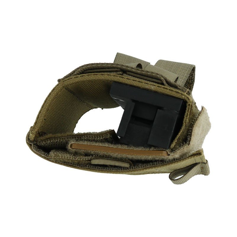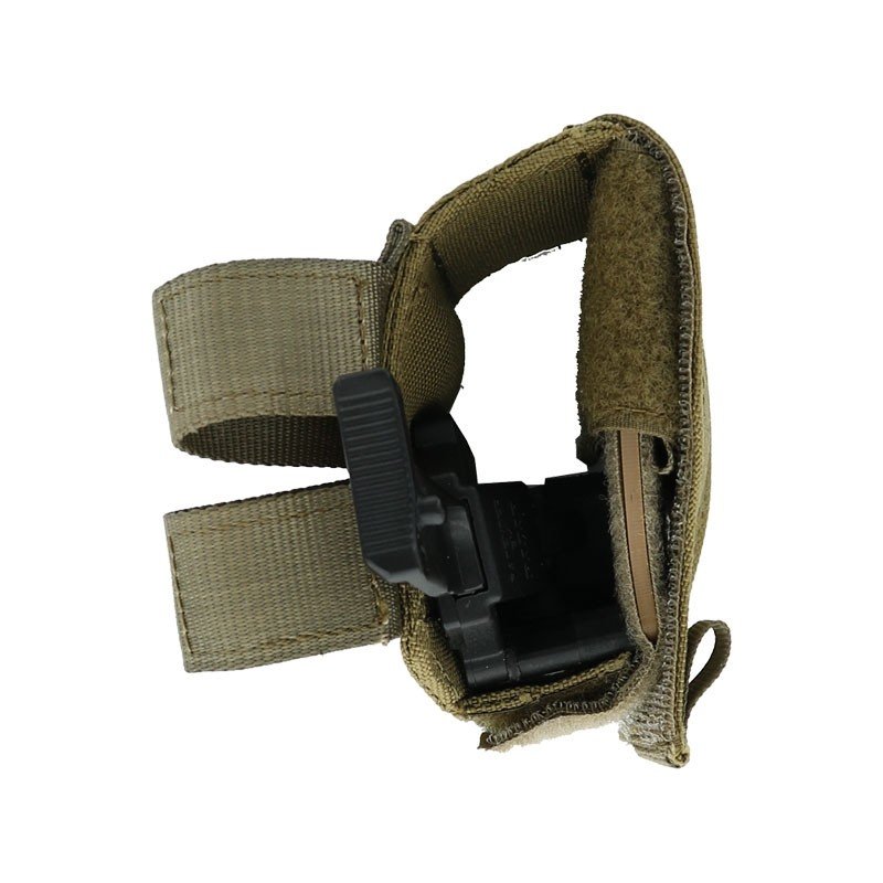 Se fixe avec 2 languette souples de type MOLLE sur tout équipement pourvu de passants MOLLE (Plaque de cuisse souple, ceinturon tactique, Housse pare-balles, etc…)