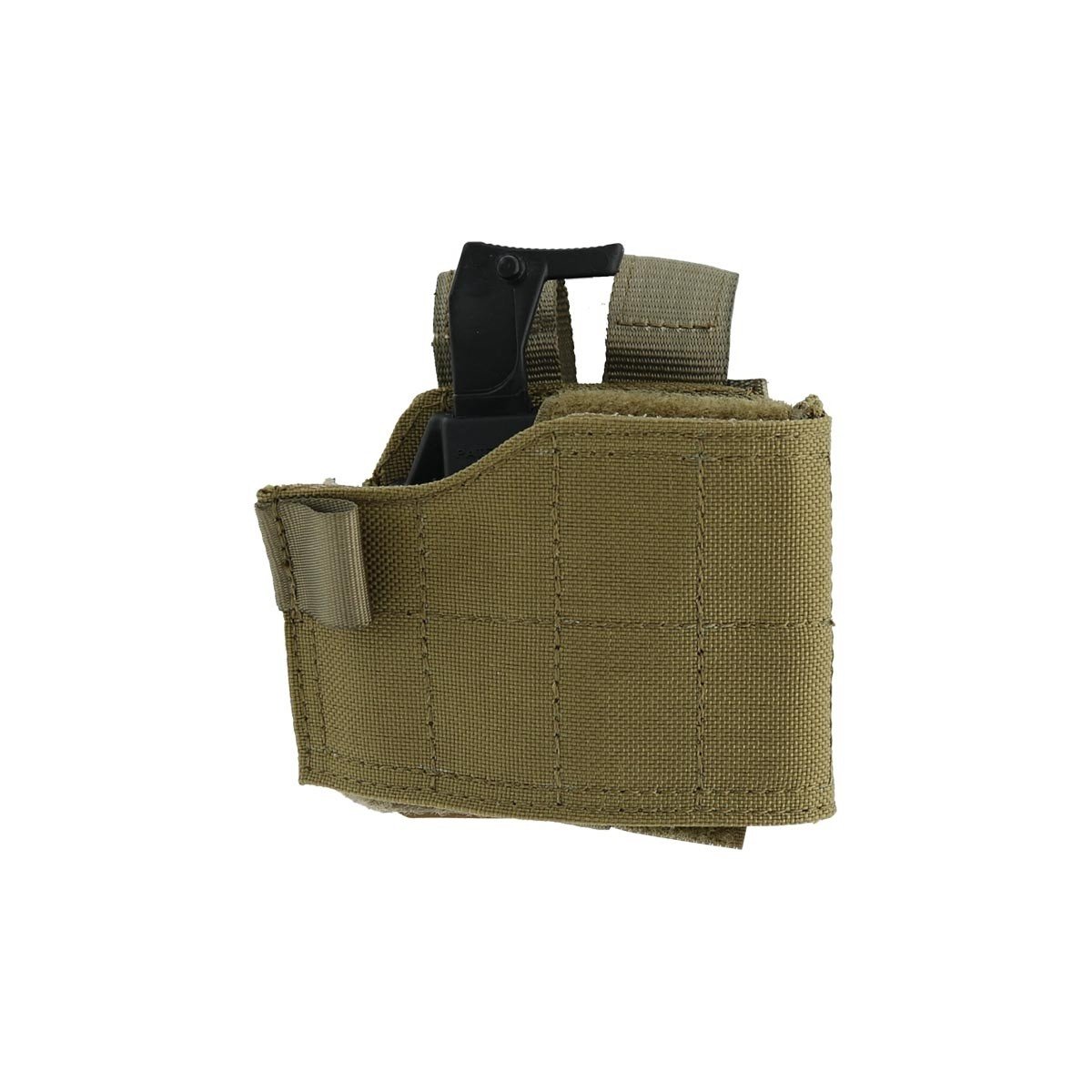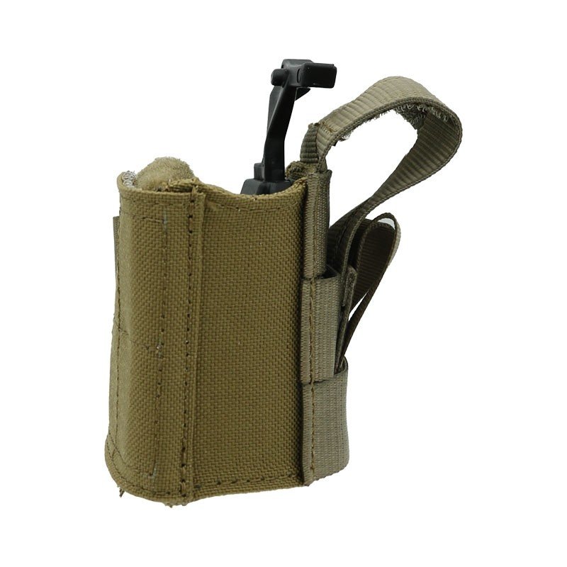 Se fixe avec 2 languette souples de type MOLLE sur tout équipement pourvu de passants MOLLE (Plaque de cuisse souple, ceinturon tactique, Housse pare-balles, etc…)