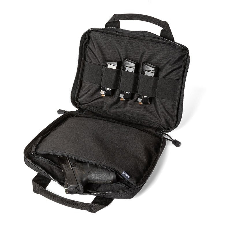 Mallette souple et discrète pour un transport sûr de votre pistolet avec ses chargeurs. Elle s’ouvre à plat et constitue une surface de travail idéale pour nettoyer votre arme.