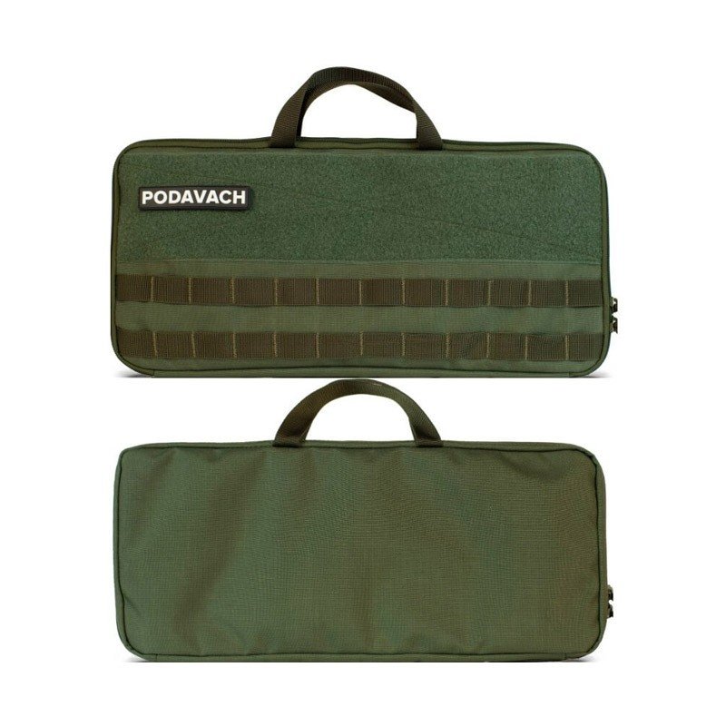 Housse de transport de couleur vert olive en nylon pour un U-Loader AR15+AK. Sur le devant un emplacement vous permet d’ajouter différents patchs, y compris le patch Podavach fourni avec la housse. Elle possède des passant MOLLE et un Velcro à l’intérieur qui permet de maintenir le U-Loader.