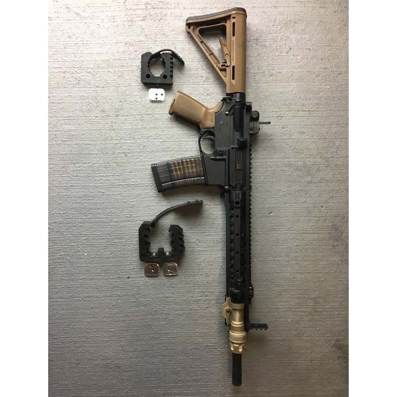 Système de porte-fusils pour véhicule utilisant 2 colliers en caoutchouc très résistants, spécifiquement conçu pour être utilisé avec toutes les tailles de panneaux MOLLE RIP-M Grey Man Tactical. Le kit comprend des plaques de renfort en aluminium permettant ainsi le montage vertical ou horizontal de votre fusil.