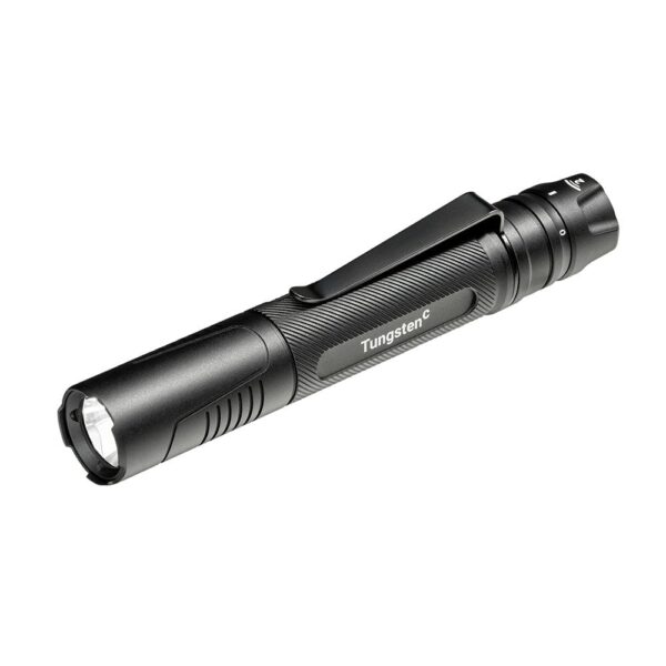 La gamme Tungsten d’ASP comprend plusieurs variantes. La version DF (Dual Fuel) se distingue par sa compatibilité 18650 rechargeable + CR123A et son port de recharge USB intégré. D’autres versions peuvent fonctionner exclusivement avec des piles CR123A.