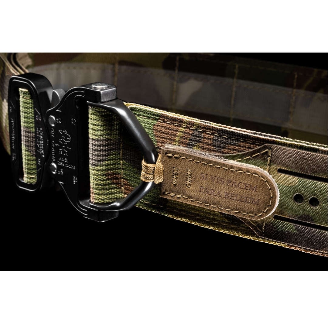 La SI VIS PACEM PARA BELLUM D-Ring Retention Tab est une patte de rétention pour D-Ring conçue pour personnaliser et sécuriser l’anneau de retenue de la COBRA Operator Belt 2.0 . Elle maintient le D-Ring en position lorsqu’il n’est pas utilisé tout en ajoutant un élément distinctif à l’équipement. Cette patte de retenue est amovible et peut être remplacée par d’autres modèles afin d’afficher une information utile sur le terrain ou simplement exprimer l’identité et les valeurs de l’utilisateur. Fabriquée en Hypalon caoutchouté , elle garantit une excellente adhérence même en conditions humides. L’inscription “Si vis pacem para bellum” est gravée au laser directement dans le matériau afin de créer un relief discret et durable qui conserve son apparence au fil du temps. L’expression latine Si vis pacem, para bellum , qui signifie « si tu veux la paix, prépare la guerre », rappelle que la paix repose souvent sur la capacité à se défendre. Cette maxime, largement utilisée dans l’histoire militaire, exprime l’idée que la préparation et la détermination constituent les meilleures garanties pour préserver la paix. La fixation est assurée par un Velcro® Ultra-Mate hook garantissant une adhérence fiable avec la surface Velcro® loop présente sur la ceinture.