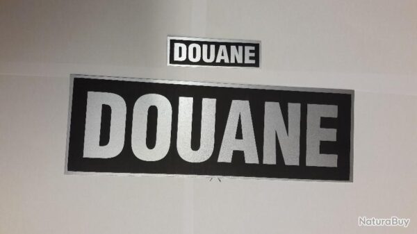 | Nom produit | Logo Douanes Fond Noir Lettrage Gris (Non Reflechissant) 25 X 10Cm Sur Ve |