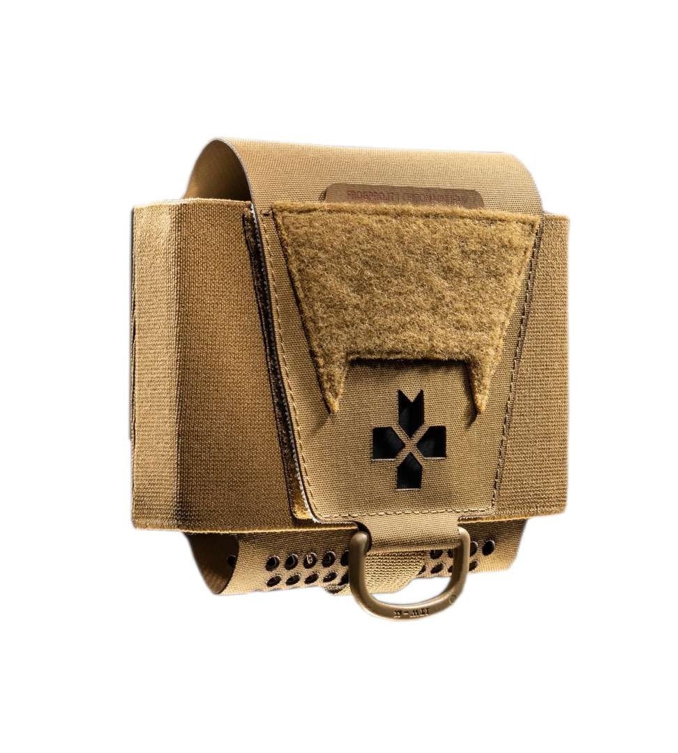 Disponible en coloris tactique, ce Frogpro se porte dans la zone lombaire de la ceinture de combat pour un accès optimal. L’anneau en D ITW Nexus® permet une extraction instantanée de l’insert médical, qui se déplie pour révéler son contenu en cas d’urgence.