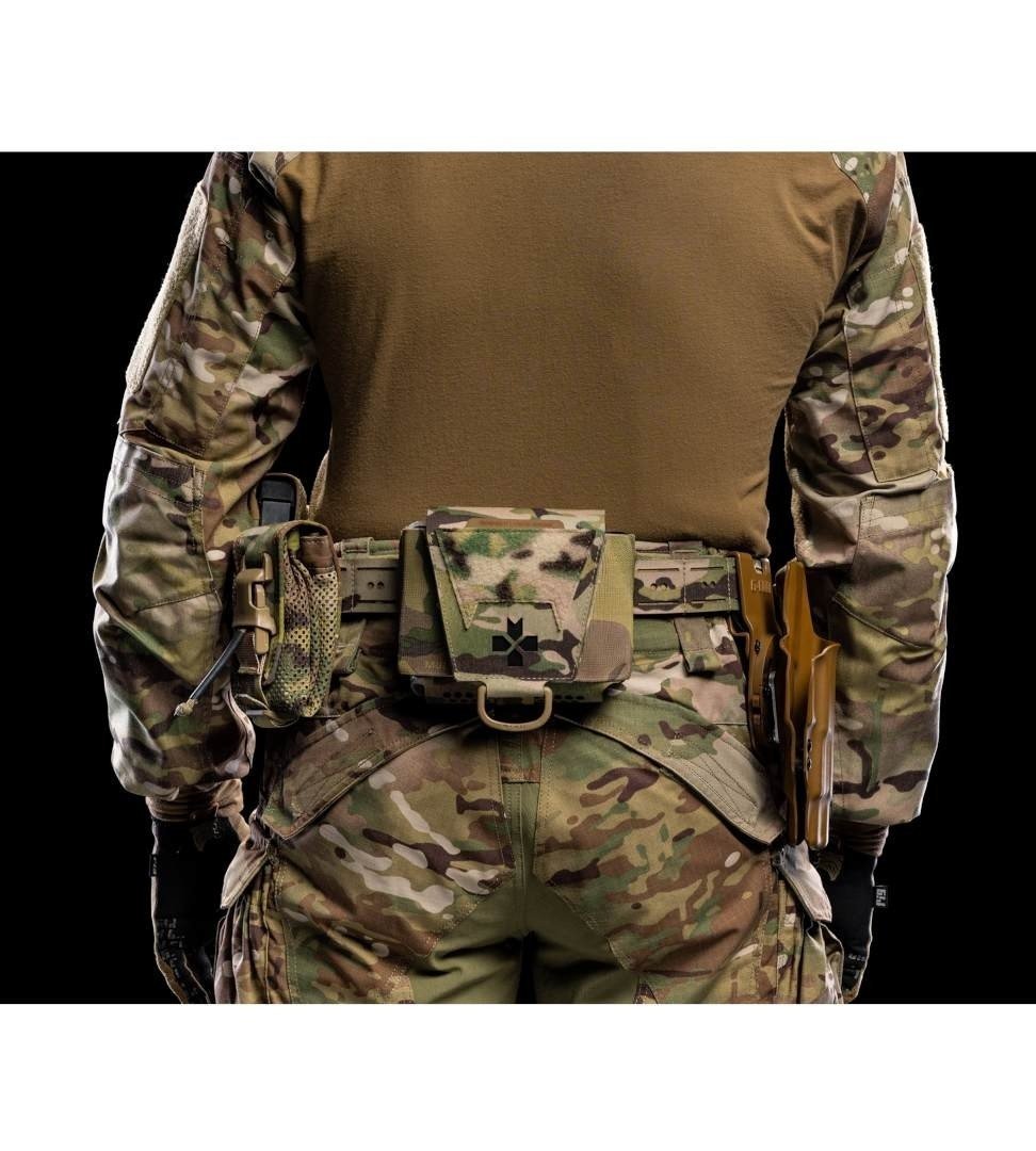 Ce mini IFAK Frogpro est conçu pour être fixé dans la zone lombaire de la ceinture de combat, via le système MOLLE ou les attaches spécifiques. Cette position garantit un accès en autonomie, même d’une seule main, en situation opérationnelle critique.