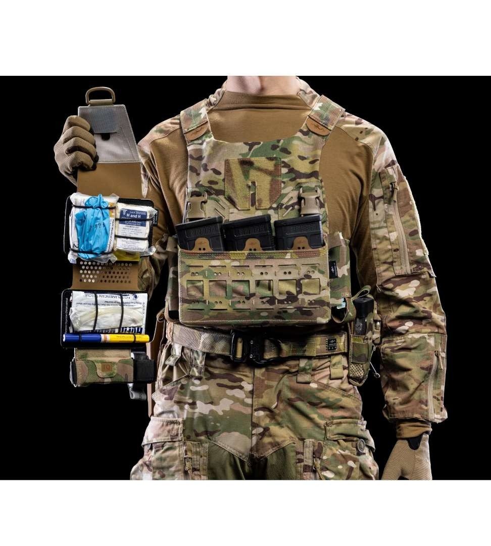 Ce mini IFAK Frogpro est conçu pour stocker les équipements médicaux d’urgence essentiels : garrot tactique, pansement hémostatique, bandage compressif, décompresseur thoracique. Le volume disponible est optimisé pour les items critiques de premiers secours en combat.
