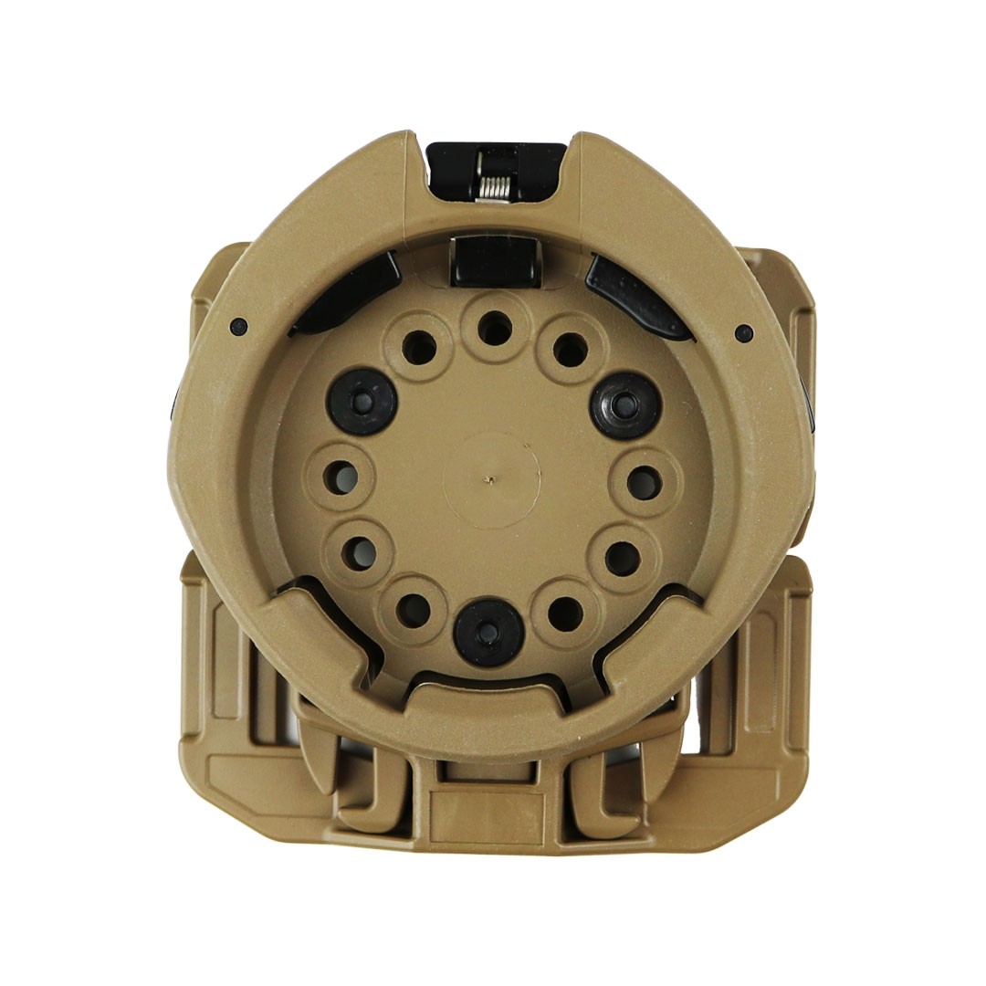 La griffe Click-In MBS MOLLE Radar 1957 est un système de fixation modulaire en polymère injecté, conçu pour fixer un holster sur une plateforme MOLLE de manière rapide et sécurisée. Ce modèle est équipé de l’adaptateur RDC femelle intégré, permettant d’accueillir les interfaces mâles RDC/Multilink pour un montage et un démontage instantanés. Sa construction robuste garantit une fixation fiable sur trois passants MOLLE, tout en restant légère et ergonomique. Le système Click-In assure un verrouillage sûr et un retrait rapide selon les besoins de l’opérateur. Points forts Fixation MOLLE avec.
