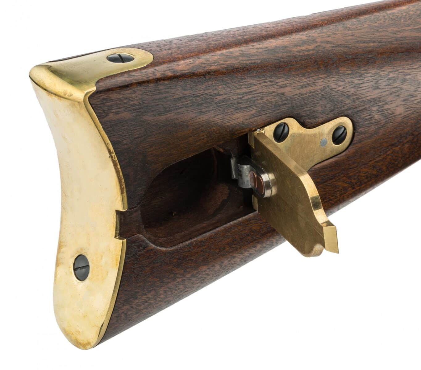 Le Mousquet Zouave 1863 33 » à percussion cal. 58 s’adresse aux tireurs à la recherche d’une arme fiable, précise et élégante. Sa conception robuste, son canon rayé et son calibre puissant garantissent des performances optimales lors des compétitions de tir à la poudre noire ou des démonstrations historiques. La crosse en noyer huilé offre une prise en main confortable et un aspect authentique, renforçant l’expérience de tir tout en assurant la durabilité de l’arme.