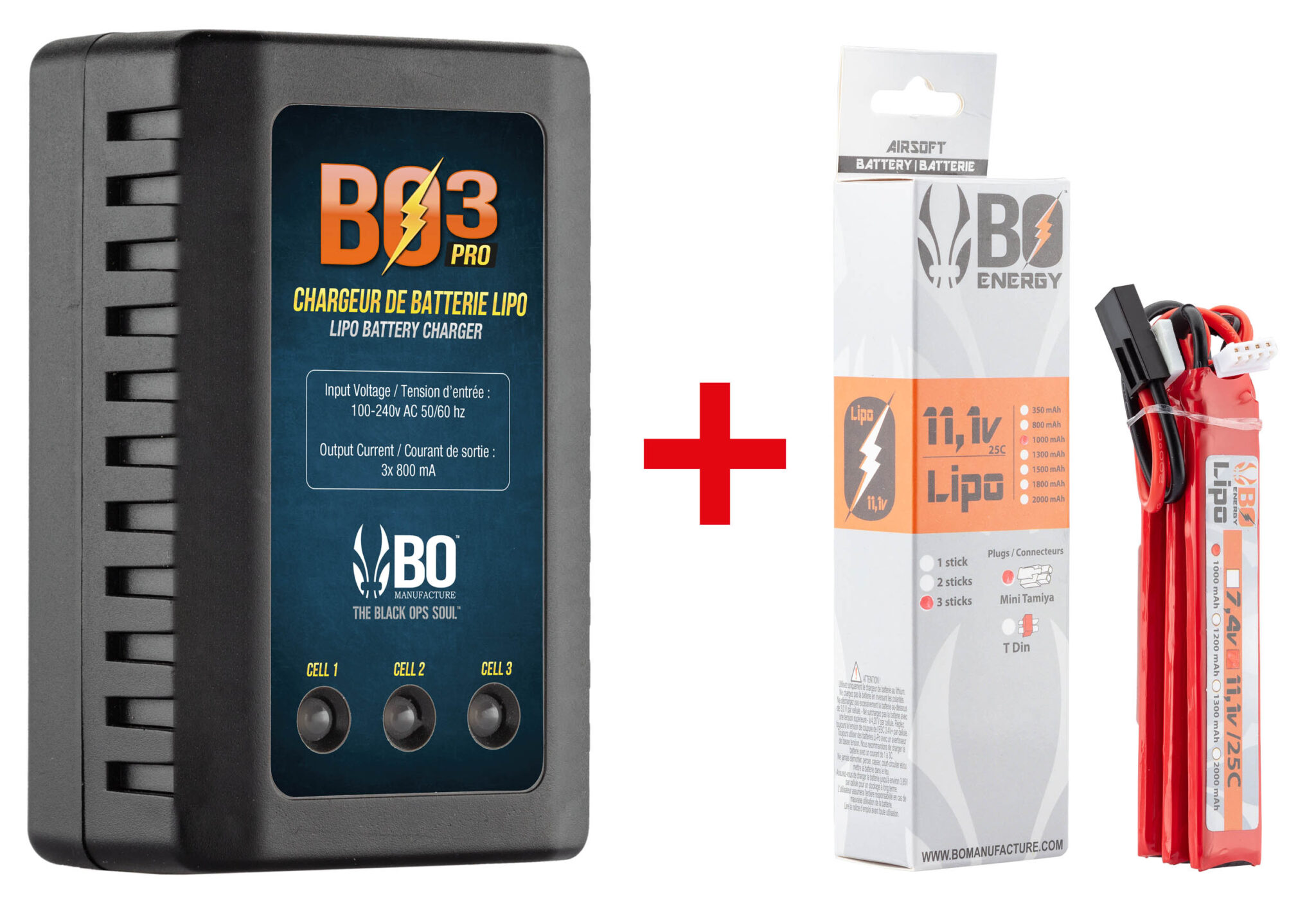 Ce produit est particulièrement adapté pour : airsoft, parties en extérieur, CQB. Ce pack LiPo BO 11. 1V est proposé avec chargeur automatique balance BO3 et décliné en Mini Tamiya ou T-Dean. Il est conçu pour les joueurs souhaitant une alimentation réactive et constante sur des configurations airsoft adaptées. Batterie LiPo 11. Pensé pour un usage intensif, il résiste aux conditions difficiles rencontrées sur le terrain de jeu.
