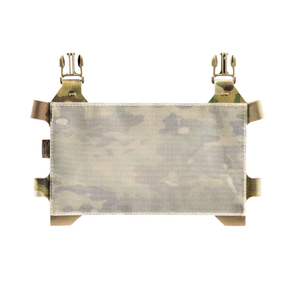 Le Modular Reconnaissance MOLLE Panel (MRMP) est un panneau MOLLE tactique modulaire conçu pour offrir une liberté maximale dans la configuration de l’équipement tout en conservant un ensemble léger et compact. Pensé pour les opérateurs nécessitant un accès rapide à leur matériel, il permet d’organiser efficacement les poches et accessoires essentiels sur un porte-plaques ou en configuration chest rig. La face avant est entièrement fabriquée en tissu composite LAHYCO découpé au laser et intègre le système Multi-Dot MOLLE PALS FROG.PRO . Cette structure à trous et fentes assure une compatibilité totale avec les poches MOLLE PALS traditionnelles tout en permettant la fixation directe d’accessoires tels que cyalumes, garrots ou équipements légers à l’aide de corde élastique 1/8”. Le tissu LAHYCO offre des propriétés techniques avancées : il est NIR-compliant afin de réduire la signature sous vision nocturne, hydrophobe pour une utilisation en environnement humide ou maritime, et résistant à la flamme afin d’améliorer la protection de l’utilisateur lors d’expositions à la chaleur ou au feu. La véritable modularité du MRMP réside dans sa capacité à être configuré soit comme panneau frontal pour porte-plaques , soit comme base de chest rig modulaire . Le dos équipé d’un Velcro® Ultra-Mate® hook permet un montage direct sur un porte-plaques compatible ou l’intégration avec des bretelles et un pad de confort pour une configuration chest rig légère et adaptable. Points forts Système complet MOLLE PALS Multi-Dot pour une modularité maximale.