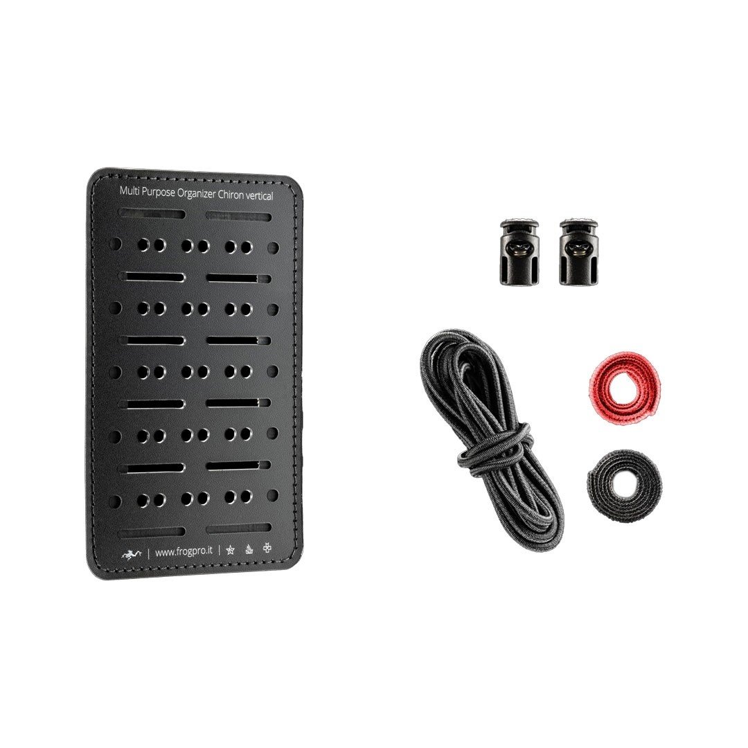 L’organiseur multifonction Chiron vertical est un panneau modulaire en technopolymère pour pochettes conçu pour transporter de manière parfaitement organisée et personnalisée les « outils du métier ». Le Velcro® Ultra-Mate au dos permet de l’appliquer sur n’importe quelle surface dotée d’une bande Velcro® à boucles ou directement sur la moquette qui recouvre habituellement le coffre ou sur le tissu du toit de la voiture. Peu importe que vous effectuiez une opération spéciale, une mission de sauvetage, que vous exploriez la nature ou que vous viviez le rythme effréné de la ville. Transporter les « outils du métier » de manière organisée est essentiel pour être toujours prêt et efficace, dans tous les scénarios. Mais comment organiser parfaitement des objets très différents les uns des autres par leur portée et leur taille sans créer à chaque fois une pochette spécifique sur mesure ? Le système breveté Multi Purpose Organizer FROG.PRO est la réponse.