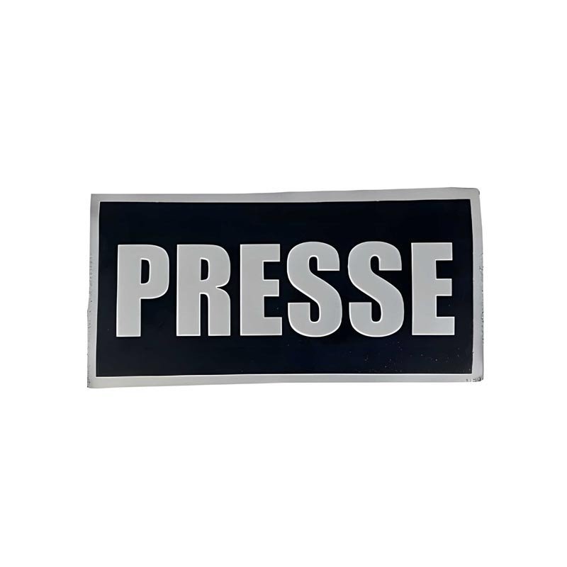 Patch d’identification et de signalisation PRESSE pour les journalistes des médias sur le terrain. Ce patch de taille standard sur fond noir avec un marquage réfléchissant permet d’identifier facilement sur le terrain, les personnels appartenant à la PRESSE.