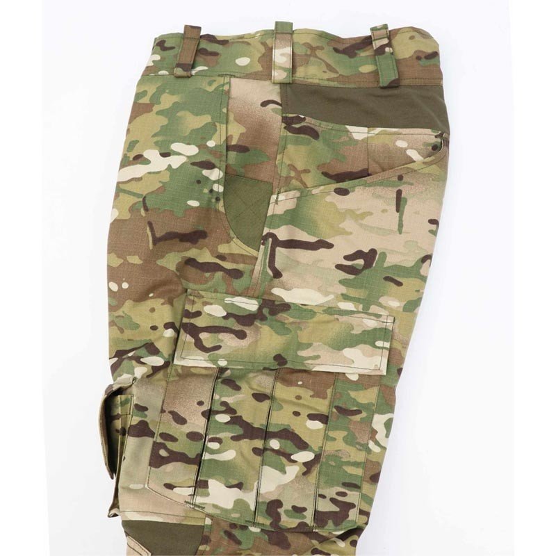 | Coloris | Pantalon de combat Multicam® de type guérilla avec des renforts aux genoux incluant des genouillères discrètes, 10 poches et des empiècements extensibles pour améliorer la mobilité et le confort |