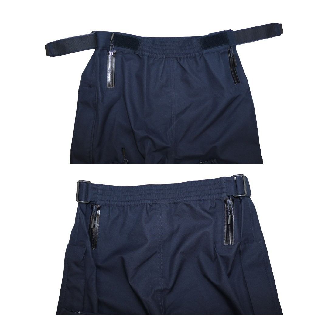 Ses longues fermetures à glissière latérales , remontant très haut sur les jambes, permettent un équipement et un déséquipement rapides, y compris avec les bottes aux pieds. VENTE EXCLUSIVE À L’ADMINISTRATION Ce produit est réservé exclusivement aux administrations, collectivités territoriales et services officiels. Toute commande doit être effectuée dans le cadre d’un usage professionnel réglementé. Points forts Sur-pantalon pluie motocycliste dédié à la Police Municipale Protection efficace contre la pluie et le vent Conception tri-laminée légère et compacte Enfilage rapide grâce aux longues fermetures latérales Facilement transportable dans son sac étanche Caractéristiques principales Pantalon pluie léger 3 couches Coupe-vent, imperméable et respirant Résiste efficacement au vent et à la pluie Fermetures à glissières latérales longues facilitant l’équipement par-dessus un pantalon moto Quatre petites fermetures à glissière à la taille pour faciliter l’enfilage Taille élastique réglable par sangles auto-agrippantes Fermetures latérales étanches avec rabat tempête auto-agrippant Fermeture à glissière double sens permettant l’accès aux poches du pantalon porté dessous Marquages réfléchissants pour une meilleure visibilité Tirettes de fermetures moulées utilisables avec des gants Sac de rangement Roll-Top imperméable fourni Coutures étanches Poids avec sac : 720 g Coloris : bleu marine foncé Tailles disponibles : XS à 4XL Longueurs disponibles : co