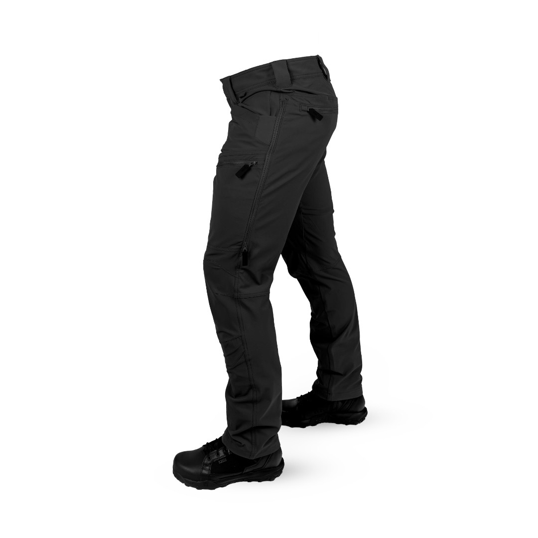 Pantalon tactique polyvalent Coupe Tapered (ajustée) Taille contournée avec passants renforcés Fermeture par braguette et bouton Poches mains inclinées avec renforts couteau et poche monnaie Poches cargo zippées à profil bas Poches arrière zippées et poches utilitaires Genoux articulés avec poches internes pour genouillères Gousset à l’entrejambe Système d’aération latéral 10 poches au total Coutures renforcées aux points de tension (bartacks) Construction simple et double piqûre selon les zones