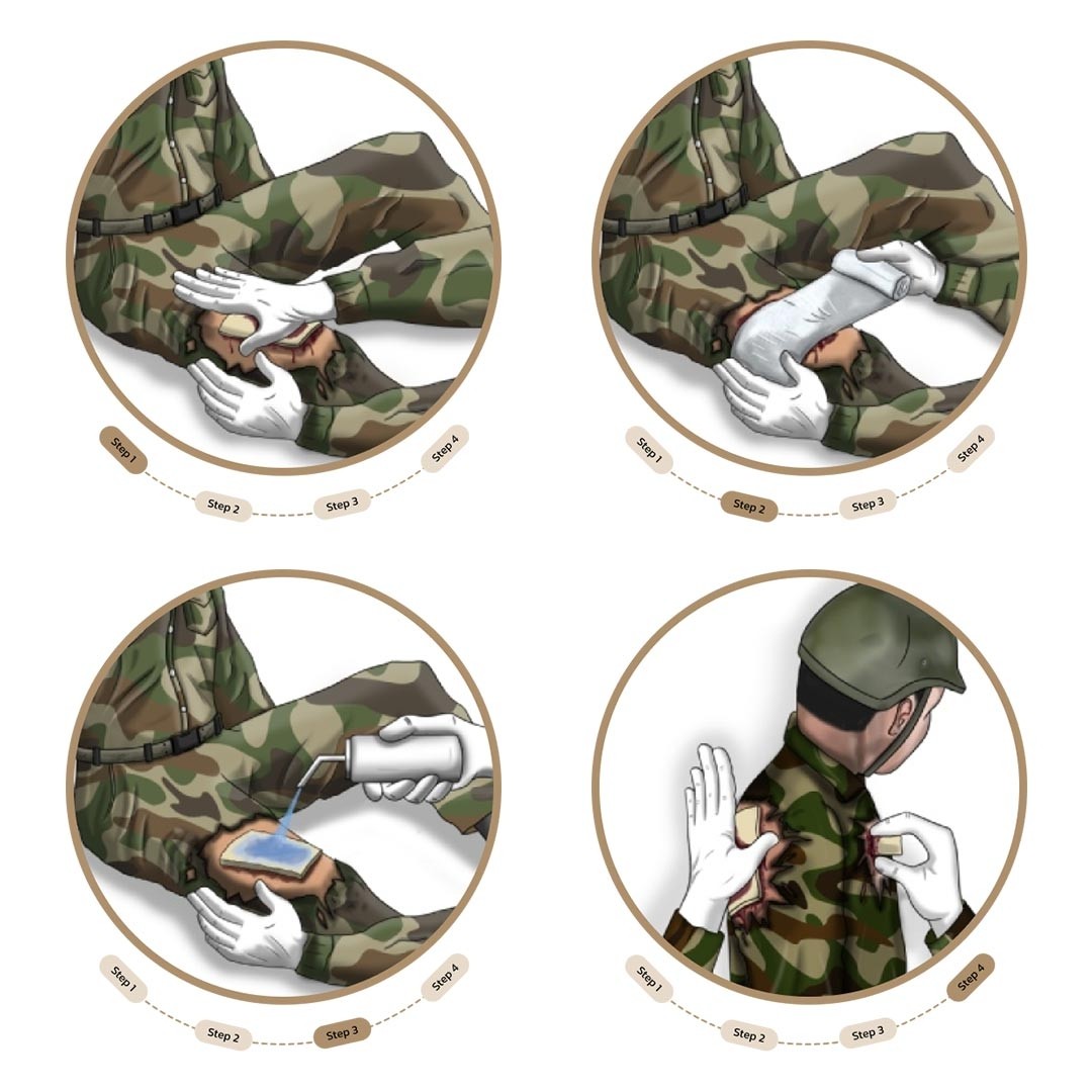 | Description fabricant | Le patch MIL88 Axiostat est un pansement hémostatique bioactif. Il fonctionne sur un mécanisme unique de mucoadhésion basé sur la charge électrique qui forme une barrière mécanique sur la zone de saignement. La technologie de fabrication n’est pas une compresse imprégnée, mais c’est en 100 % chitosan, sans résidus de poudre ou de réaction thermique. POLYSACCHARIDE naturel composé de nanomères de glucosamine et de N-acétyl glucosamine = Chitosan à charge cationique (+Ve). Le chitosan a été traité pour perdre sa charge acide de (6,4 PH) pour un PH physiologique de (7,4 PH). Son retrait est très facile avec de l’eau, il faut donc veiller à toujours le protéger de l’humidité et de l’eau avec un bandage le plus étanche possible comme pour tous les dispositifs chitosan imprégnés ou non (100 %). C’est une nouvelle génération de dispositif hémostatique Indien, de conception révolutionnaire PBT Protonated Bioadhesive Technology (prix de l’innovation 2024 en Inde). Ces préparations sont uniques en ce sens qu’elles adhèrent aux tissus lorsque c’est nécessaire et se détachent facilement lorsque leur travail est terminé. La version patch est simple à utiliser en surface et il est commode à transporter grâce à son emballage compact et fin. Il stoppe les hémorragies légères à importante et il peut être déchiré à la main, plié, roulé et aussi inséré dans la plaie. Caractéristiques 100 % chitosan sur compresse (non imbibé) Facile à appliquer Arrête instantanément les hémorragies modérées à graves Peut être coupé, plié et inséré dans une plaie profonde Retrait indolore par irrigation avec une solution saline Certifications : Certification CE 2460/ FDA / MDA / ANVISA et HSA certifications ISO13485/2016 Pays d’origine : Inde Durée de conservation de 5 ans Actif sur toutes les faces Emballage camouflé, léger et robuste Dimensions : 8 x 8 x 0.4 cm Fonctionnement L’effet combiné de la bio-adhésion et de la formation d’un caillot sanguin puissant induit une hémostase instantanée. Absorptio |