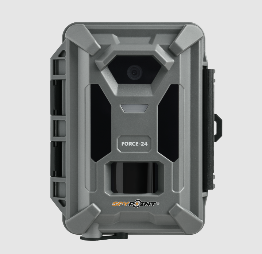 Piège photo Spypoint Force-24, 24 MP, vidéo 2K avec son, déclenchement 0,5 s, portée 21 m. Stockage carte SD, sans abonnement. Surveillance terrain.