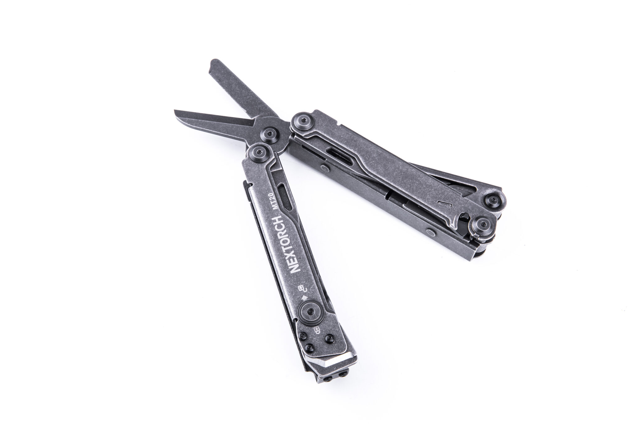 La MT20 propose un arsenal complet : deux pinces (coupante et préhensile), une lame de couteau utilitaire, une lame de scie fine, un ciseau tranchant, deux tournevis interchangeables (plat et Phillips), un décapsuleur, un tire-bouchon, une lime métallique, et un outil dénudeur de fils. Chaque outil s’actionne indépendamment et se verrouille en position ouverte pour garantir la sécurité en usage.