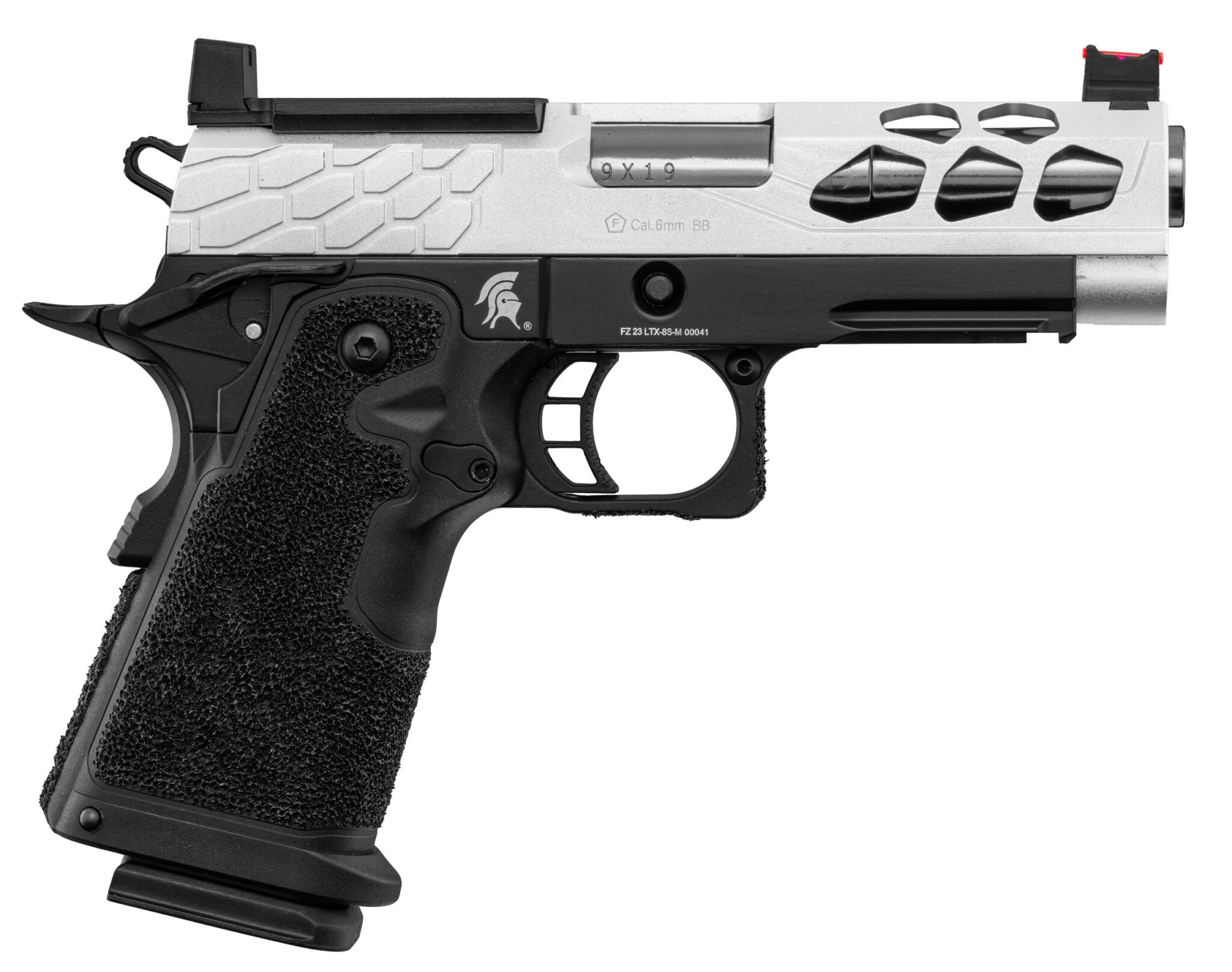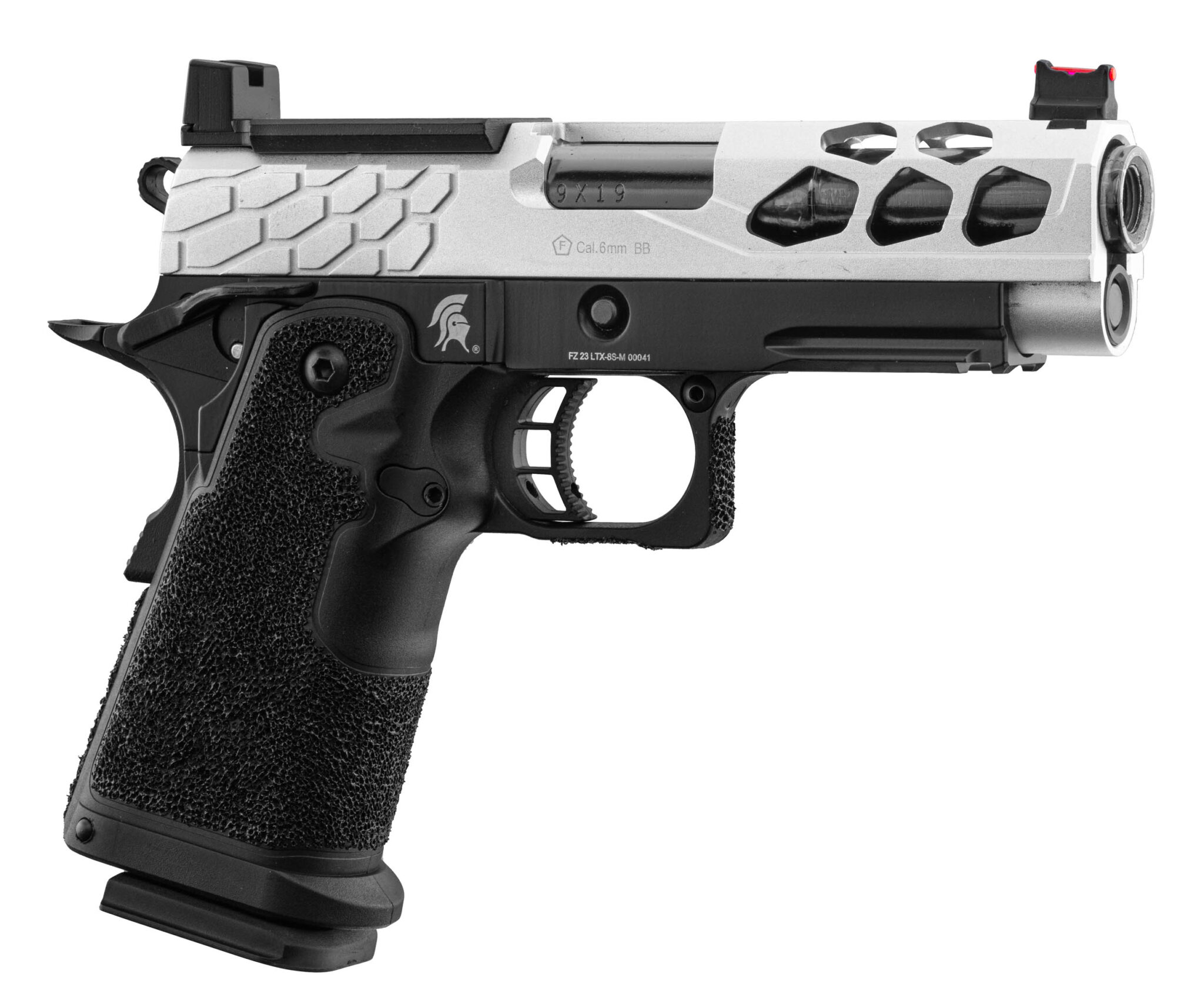 Le Pistolet Airsoft GBB Stryk Hi-Capa 4.3 Silver Lancer Tactical de Lancer Tactical s’impose comme un choix de référence dans l’univers airsoft – répliques de poing. Glissière légère ajourée en aluminium CNC. Ce produit se distingue notamment par ses performances, développant une énergie de 1 Joules.