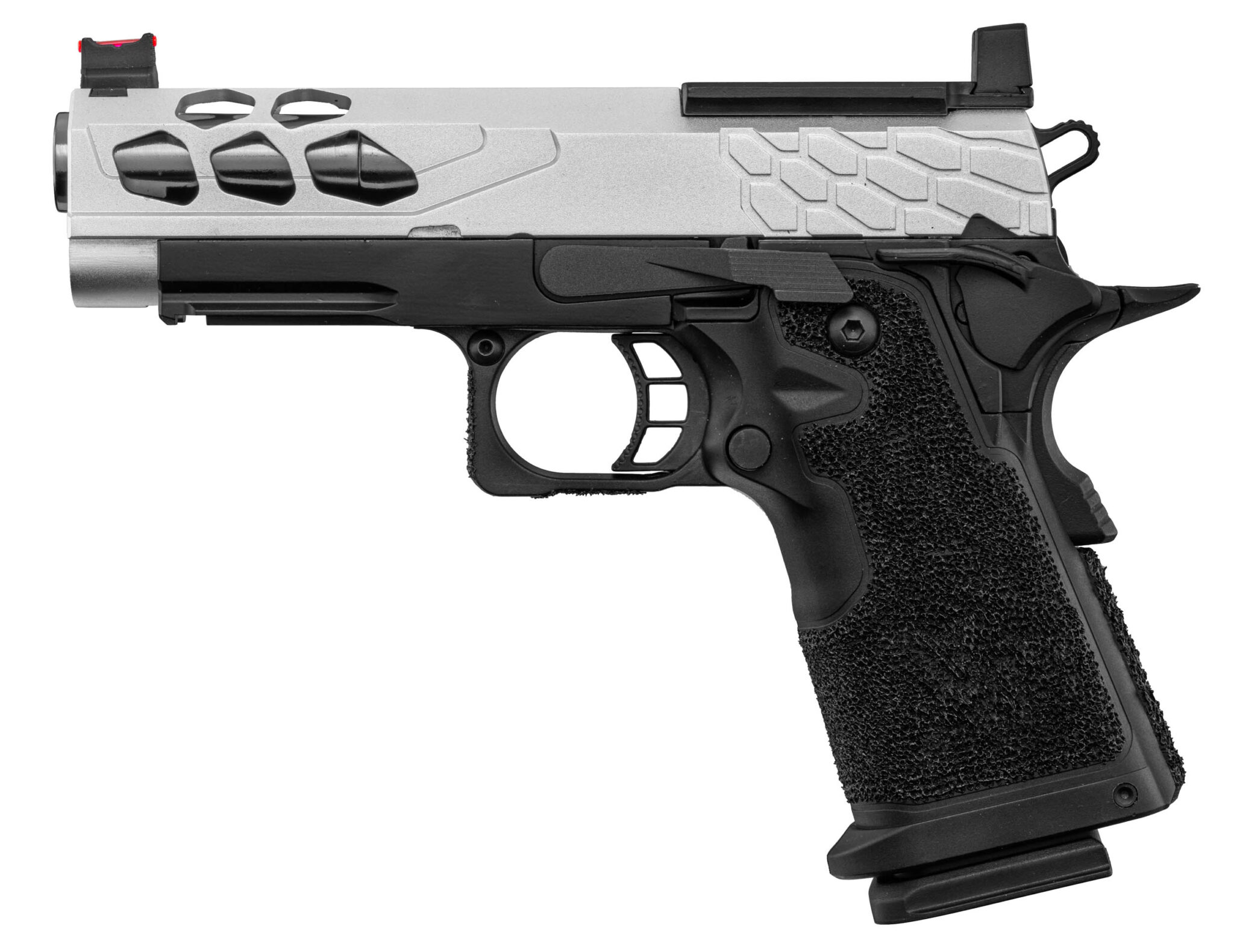 Le Pistolet Airsoft GBB Stryk Hi-Capa 4.3 Silver Lancer Tactical de Lancer Tactical est un produit pensé pour offrir des performances optimales dans le domaine du airsoft – répliques de poing.