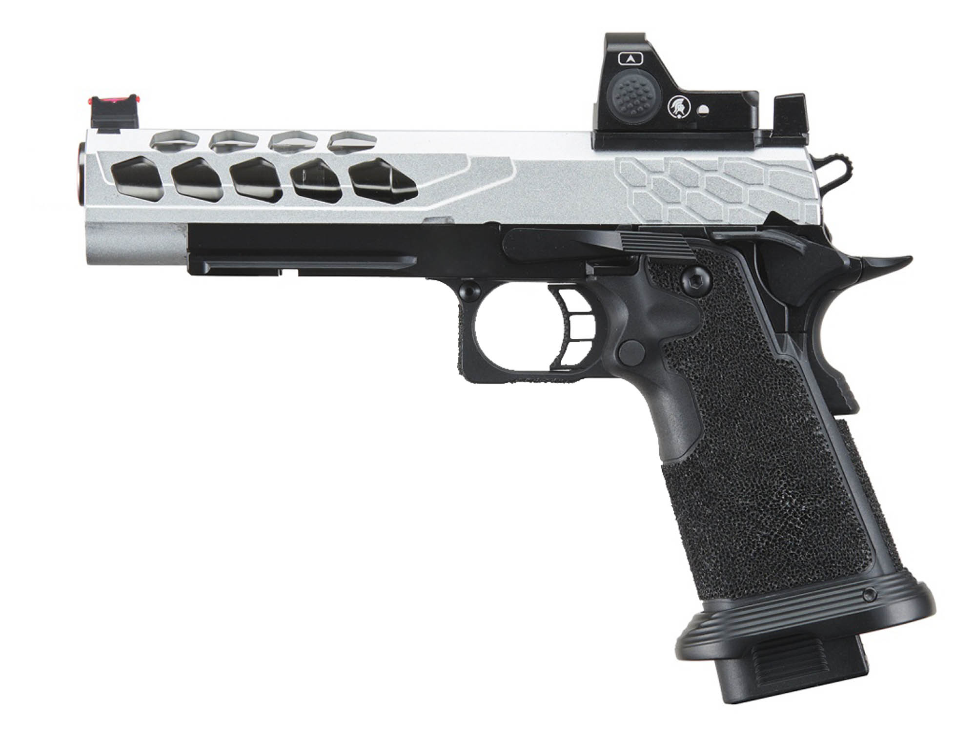 Le Pistolet Airsoft GBB Stryk Hi-Capa 5.1 Silver Lancer Tactical avec RMR de Lancer Tactical est un produit pensé pour offrir des performances optimales dans le domaine du airsoft – répliques de poing.