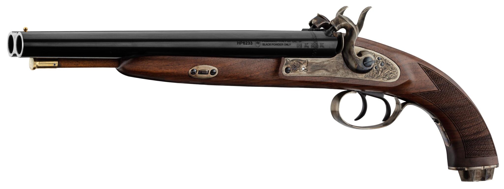 Le Pistolet Howdah Hunter à percussion de Davide PEDERSOLI & C s’impose comme un choix de référence dans l’univers armes de poing historiques. Les platines sont ornées de gravures représentant des animaux sauvages évoluant dans leurs habitats naturels, leur finition est jaspée. Ce produit se distingue notamment par ses performances, disponible en calibre [‘.50 PN’, ‘cal. 20 PN’, ‘.58 PN’].