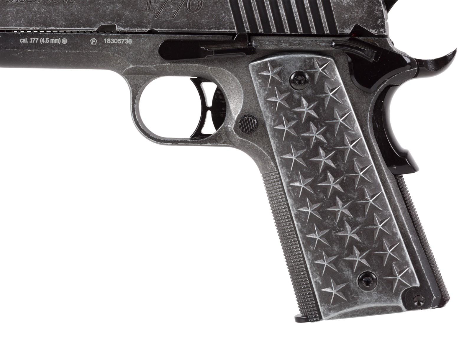 Ce produit est particulièrement adapté pour : tir de loisir, tir sur cible, plinking. Inspiré du célèbre modèle 1911 « We The People », ce pistolet à billes CO2 allie réalisme, finition usée et symbolique patriotique. Conçu en métal, il offre une prise en main authentique et une expérience de tir immersive. Calibre : 4,5 mm BB acier. Propulsion : CO2 12g. Les retours utilisateurs confirment son excellente tenue en jardin, y compris par conditions météo défavorables.