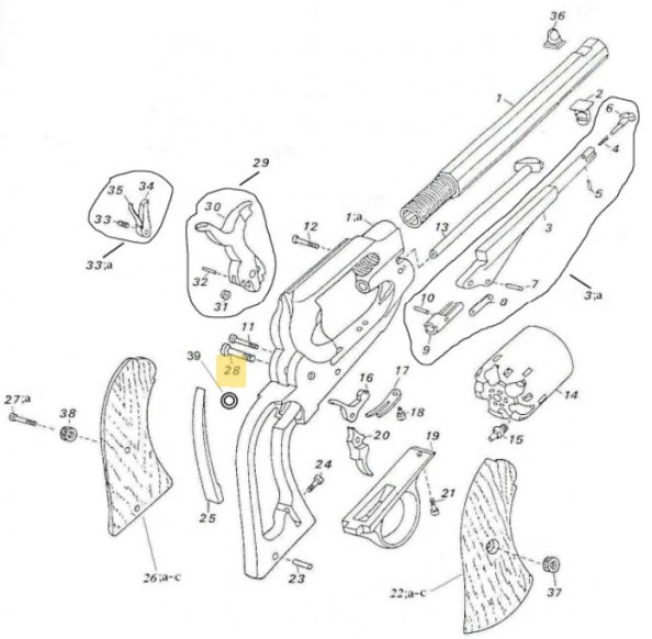 Pièces de rechange pour armes à feu Remington by Pedersoli. Cette pièce s’intègre parfaitement dans l’assemblage d’origine de votre arme. Nous recommandons de faire appel à un armurier qualifié pour le montage si vous n’êtes pas familier avec le démontage de votre arme. L’utilisation de pièces d’origine est la garantie d’un fonctionnement sûr et conforme aux normes de sécurité en vigueur.