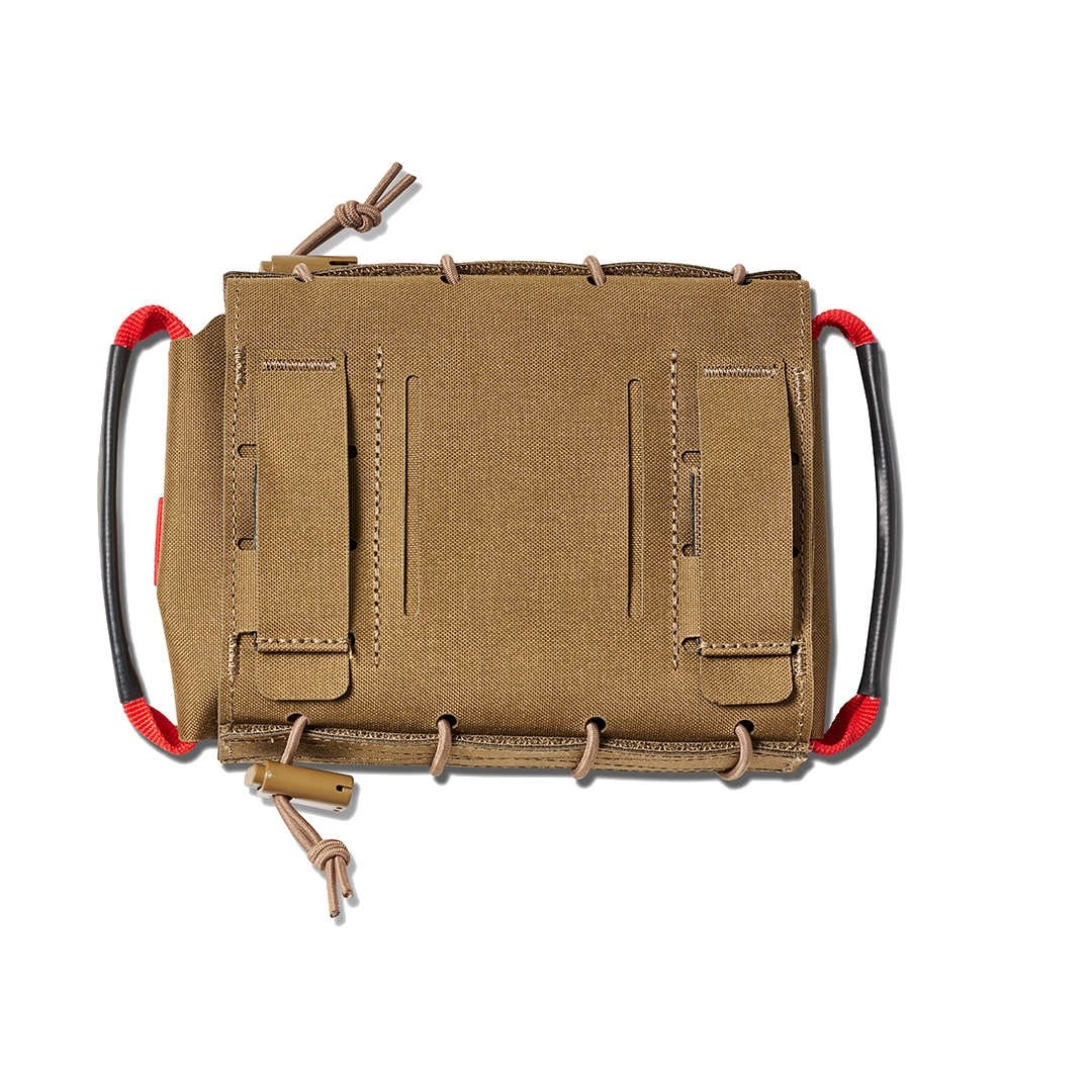 Le profil discret se prête aux espaces restreints, et les sangles MINIMOLL™ et les fentes MOLLE découpées au laser facilitent le montage à la ceinture et sur le sac. Le manchon extérieur est même réversible, permettant une fixation MOLLE ou par bande auto-agrippante. Un panneau MOLLE découpé au laser et doté d’une bande auto-agrippante à l’avant permet de ranger du matériel supplémentaire, et une pochette interne est prévue pour ranger des cisailles. L’UCR Flat IFAK Pouch est la solution idéale pour un accès simple à l’IFAK.