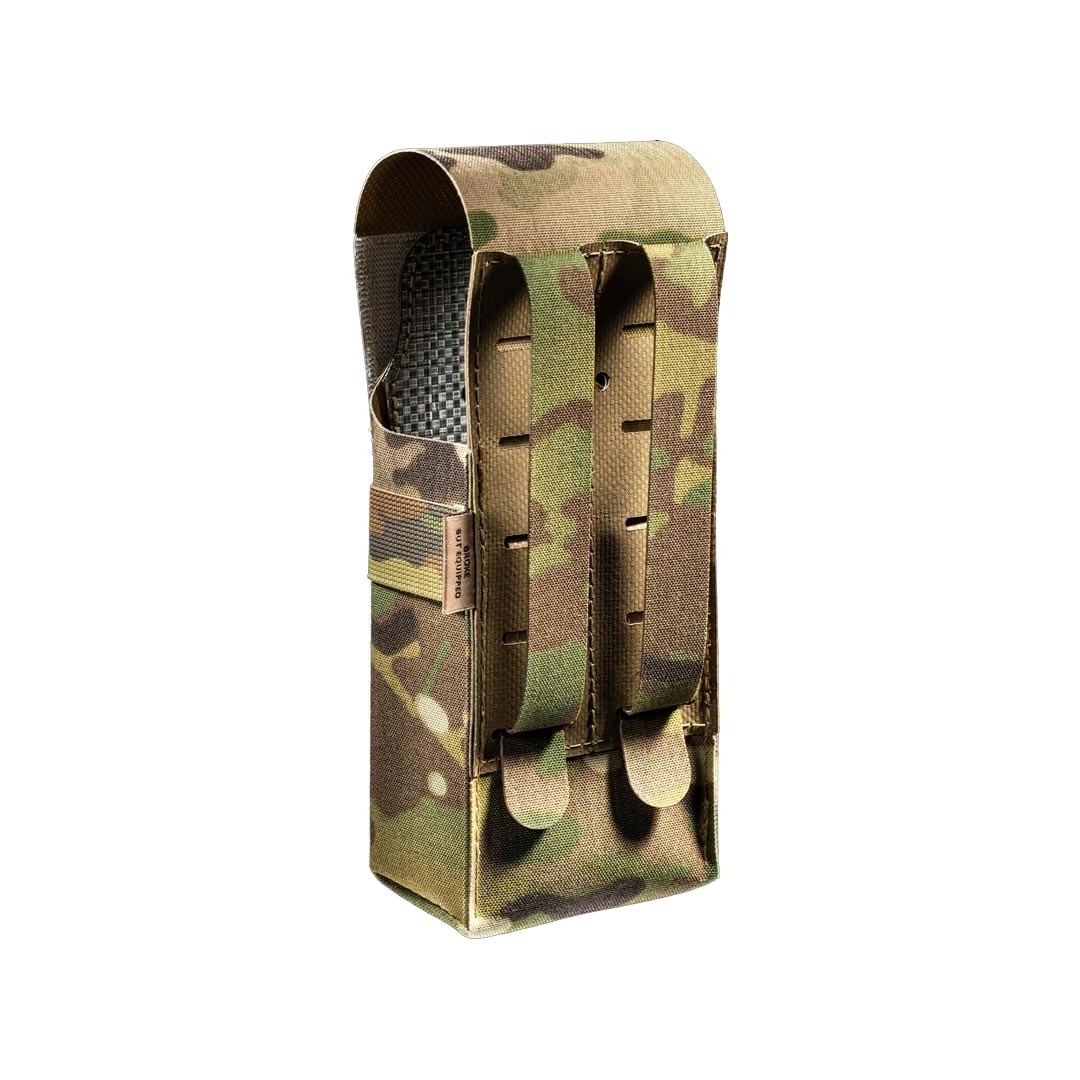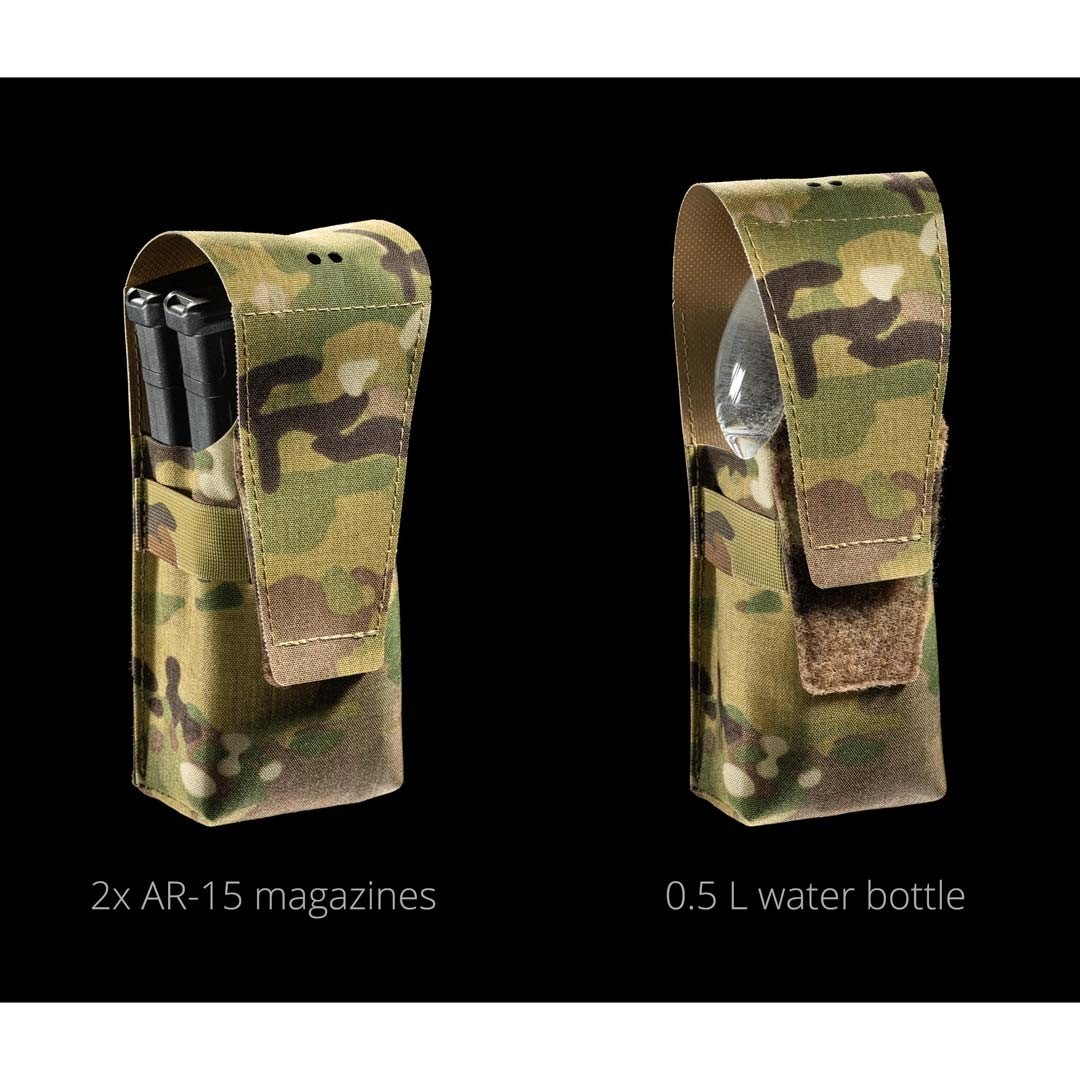 Le Double Rifle Mag Pouch sans boucle est conçu pour transporter jusqu’à deux chargeurs de fusil de type AR-15 (.223 – 5.56x45mm). Grâce à sa conception, la pochette peut également être utilisée pour transporter une radio de taille moyenne ou grande, une bouteille d’eau de 0,5 litre ou un petit IFAK. Le design du rabat est conçu pour fournir une protection maximale à vos chargeurs, empêchant toute perte accidentelle lors d’un contact physique et les protégeant de la boue et des débris. Le renfort en technopolymère Tegris optimise à la fois la rapidité et la précision lors de la réinsertion du chargeur, même en cas de stress opérationnel.