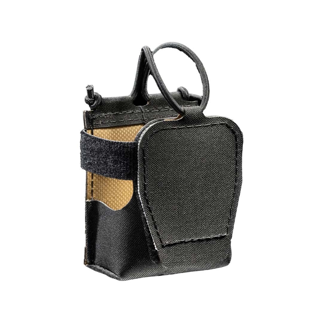 La pochette pour petites radios est conçue pour transporter divers types de radios et talkies-walkies civils de petite taille, tels que les appareils Motorola, Wouxun, Baofeng ou Midland. Les rubans One-Wrap® permettent d’ajuster la pochette à différents types de radios, avec ou sans connecteurs lat…