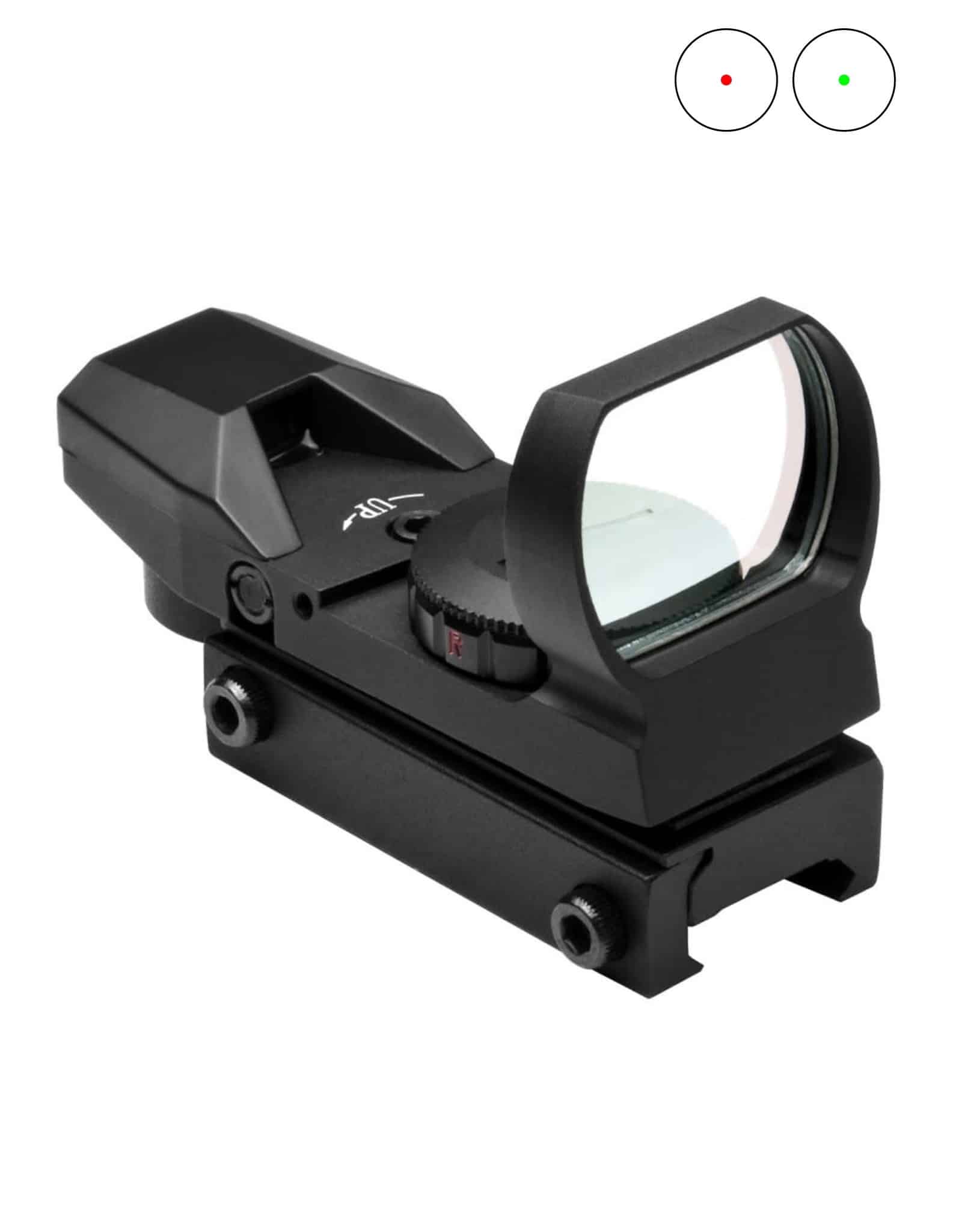 Optimisez votre précision avec la visée Reflex en aluminium, multi réticules, fixation simple sur rail Picatinny. Pile CR2032 nécessaire.
