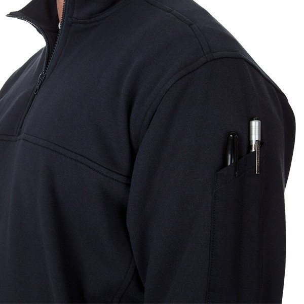 La poche Break-Through™ est une innovation 5.11 Tactical permettant d’accéder rapidement aux équipements portés en dessous (radio, holster) via une ouverture avec crochet et séparation Velcro, sans retirer le sweat.