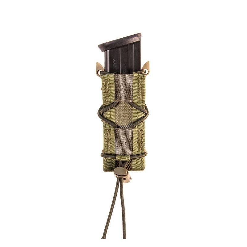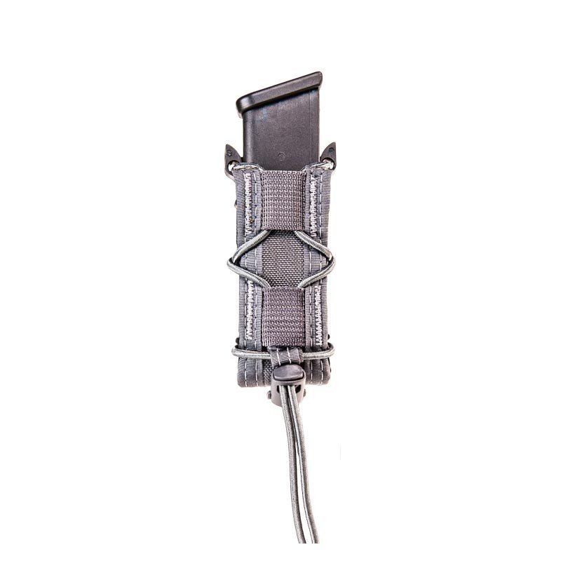 HSGI a révolutionné le système de rétention des équipements de combat grâce à ses poches élastiquées. Fabriquées à partir de Nylon renforcé, de shock cord (corde élastiquée) et de tiges guides en polymère injecté, elles permettent à l’opérateur de régler la rétention de l’objet. La poche est elle-même livrée avec 1 clip rigide MALICE HSGI® pour la fixation sur passant MOLLE.