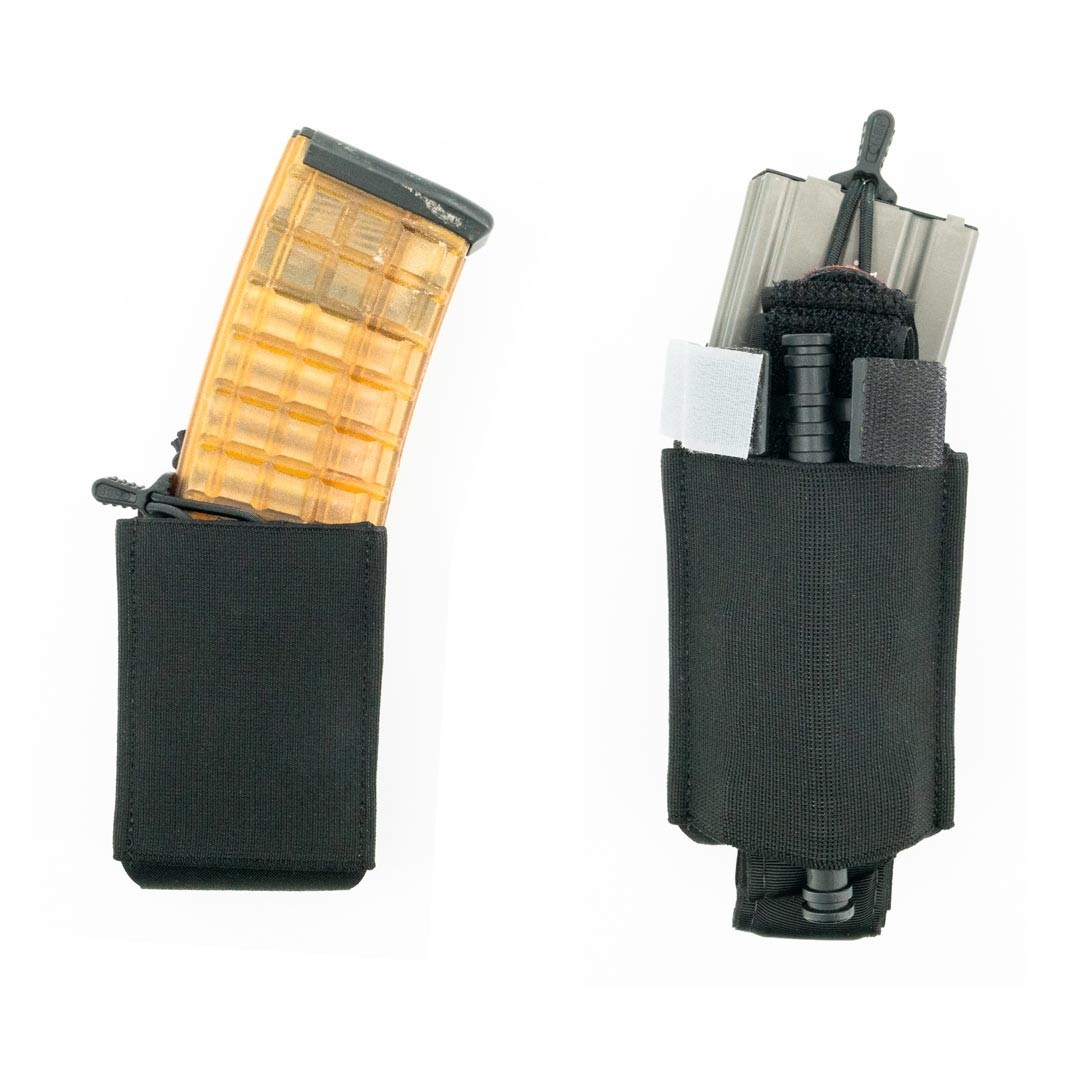 Les MP2 sont également amovibles, ce qui permet à l’opérateur de placer des radios, des télémètres laser ou des trousses médicales dans l’espace clos. Le Single Rifle Mag Pouch possède aussi une pochette élastique tissée à l’avant. Celle-ci permet de ranger en toute sécurité des chargeurs supplémentaires, un garrot, des tubes de choc, des charges, des cartes, une boussole, des lampes de poche ou tout autre kit essentiel, tout en conservant un profil incroyablement léger et fin.