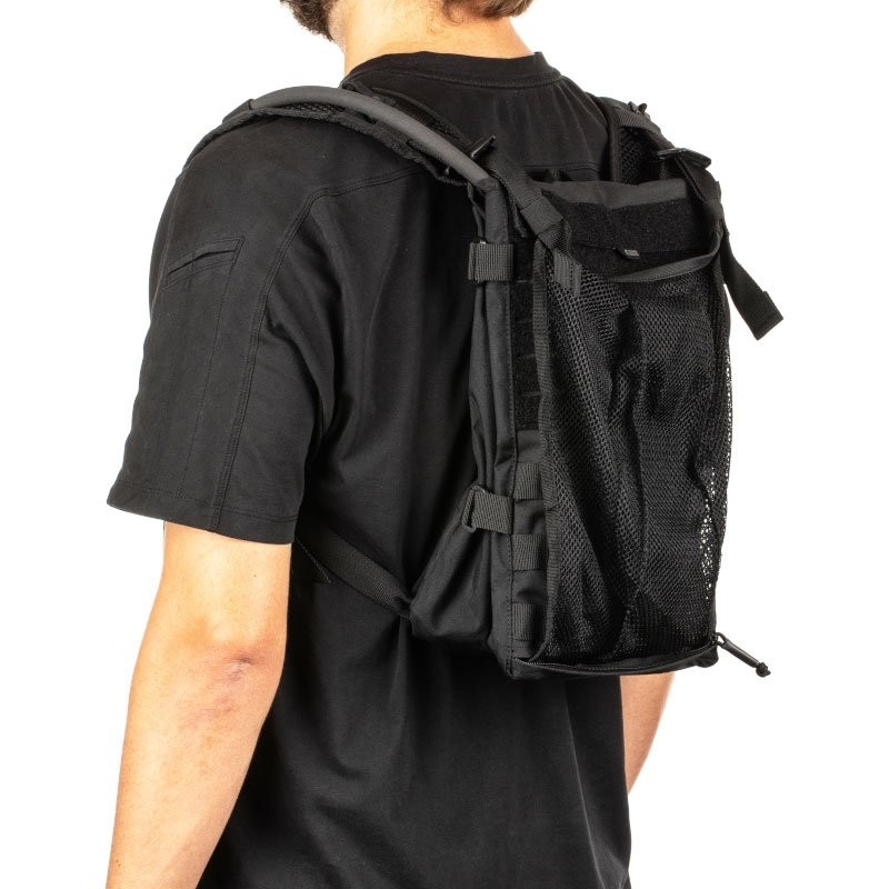 Les languettes de compression latérales permettent de maintenir le contenu compacte, tandis que le panneau en filet « shove-it » se déploie pour ranger votre casque et d’autres équipements. Des passants découpés au laser et une plate-forme MOLLE en toile permettent de fixer une poche ou autre. Ce porte-hydratation PC convertible est compatible avec le système d’hydratation 5.11® WTS Wide 3L ou avec d’autres réservoirs de taille équivalente.