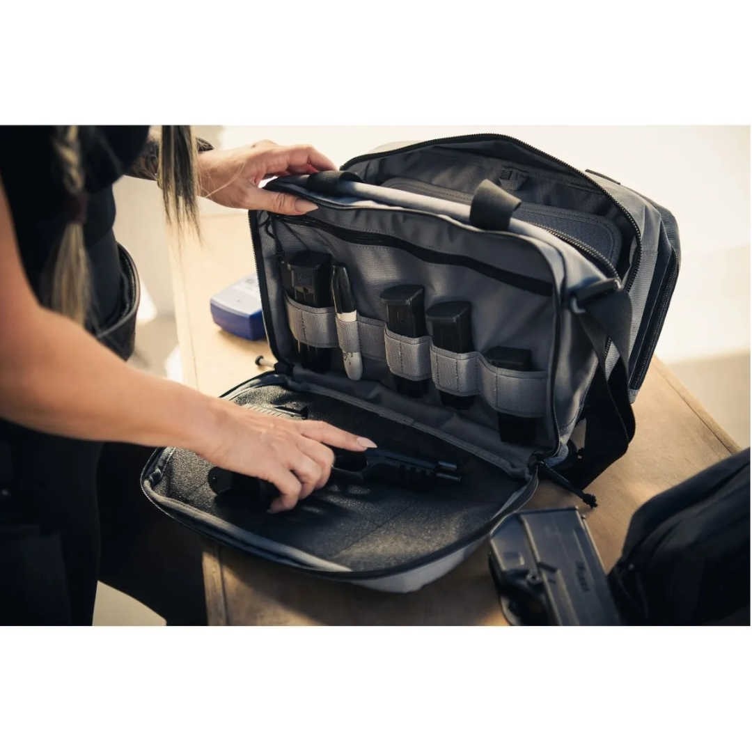 Il est facile de s’organiser grâce au sac Range Ready Pro à poches multiples. Ce sac robuste et rembourré est équipé de fermetures à glissière YKK verrouillables. Il est fabriqué en polyester 600D durable et résistant aux intempéries, avec un fond en TPU pour protéger votre équipement.