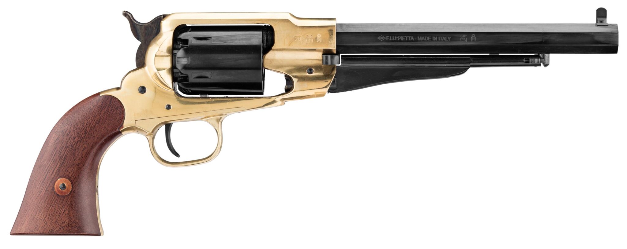 Ce produit est particulièrement adapté pour : tir de loisir, tir sur cible, plinking. Réplique fidèle du Remington 1858 fabriqué par Pietta en Italie. Idéal pour les collectionneurs ou les tireurs sportif à la poudre noire. Ce fut le premier revolver américain fabriqué avec une carcasse fermée en laiton, ce qui lui donne une solidité et une fiabilité remarquables. Carcasse laiton finition brillante. Sur le terrain, ce produit se montre particulièrement efficace grâce à sa conception robuste et ses finitions soignées.
