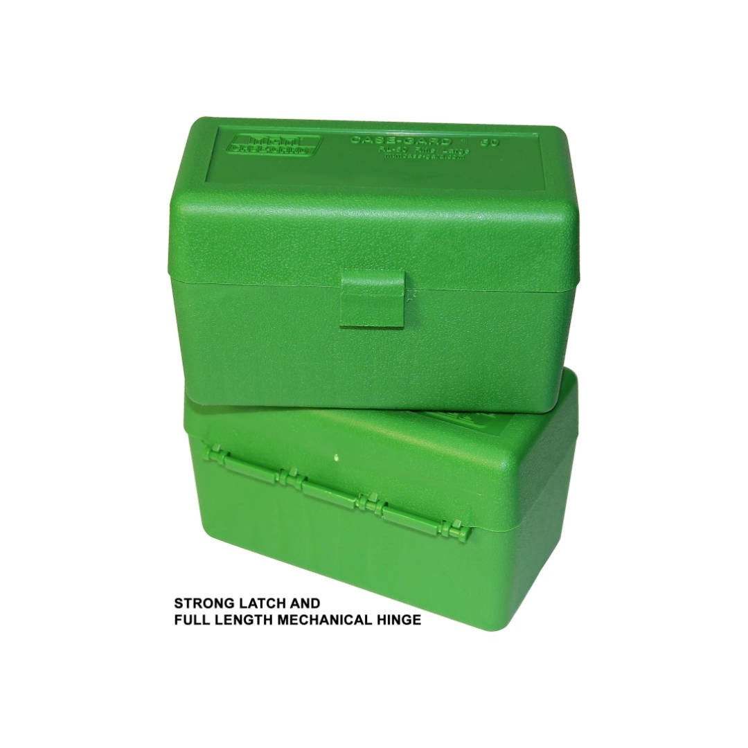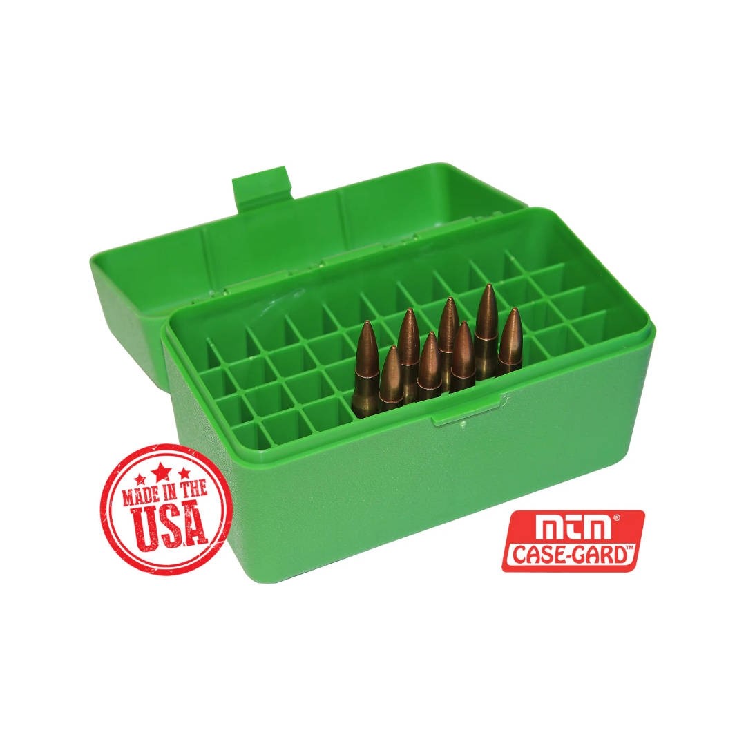 La boîte de munitions RL-50-10 est conçue pour le stockage organisé de 50 cartouches de carabine longue . Compatible avec des calibres tels que le .270 Winchester , le .280 Remington , le .30-06 Springfield , le 7×57 ou encore le 7mm Backcountry , el