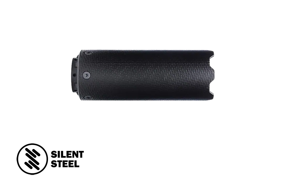 Le Safe Guard Heat Shield de Silent Steel est un pare-chaleur conçu pour protéger les mains et le matériel adjacent de la chaleur intense générée par le silencieux Compact Streamer lors d’un tir soutenu. Fabriqué en acier de haute qualité et disponible en finition noir, cet accessoire s’installe directement sur le Compact Streamer Silent Steel avec montage QDlock.