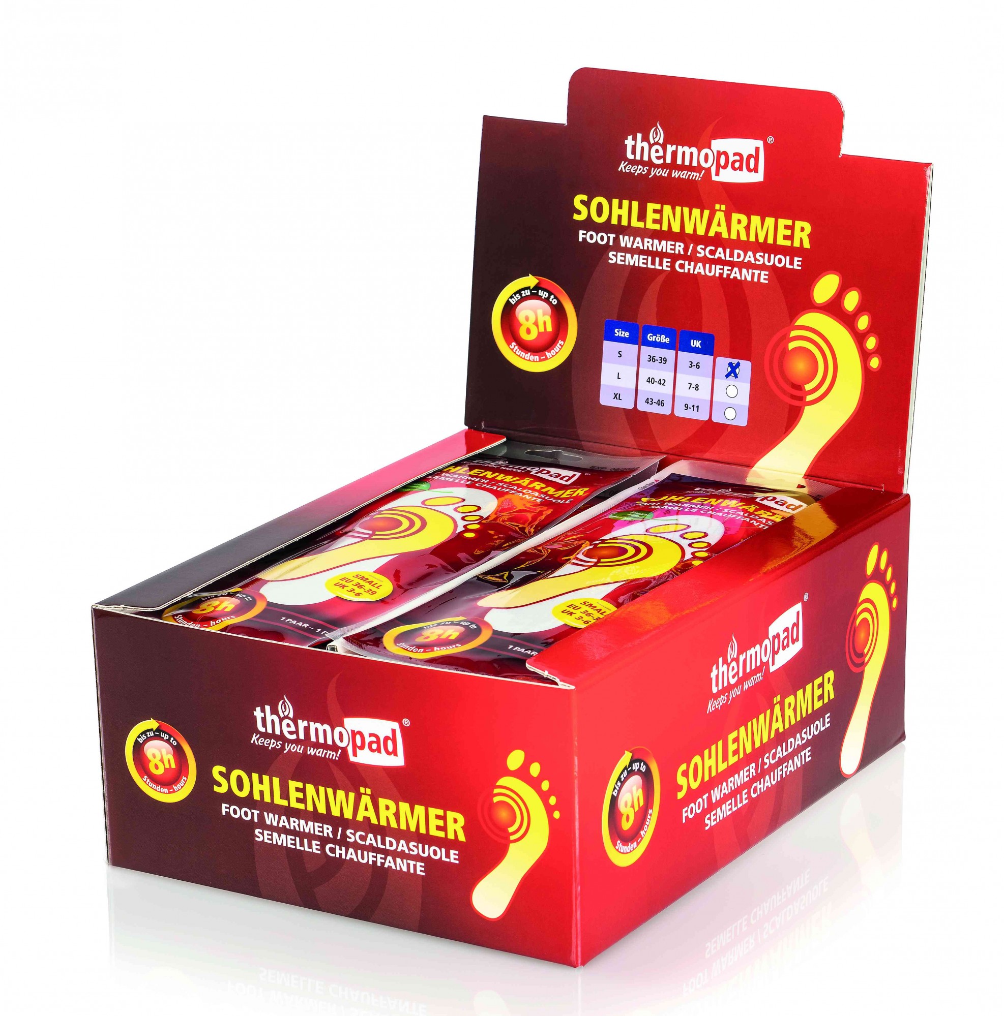 Les semelles thermiques Thermopad s'adaptent à n'importe quelle chaussure et procurent une chaleur agréable aux pieds, même lorsque les températures extérieures sont très basses. Les semelles chauffantes Thermopad sont fabriquées selon les normes de qualité les plus strictes et s'activent automatiquement au contact de l'oxygène.