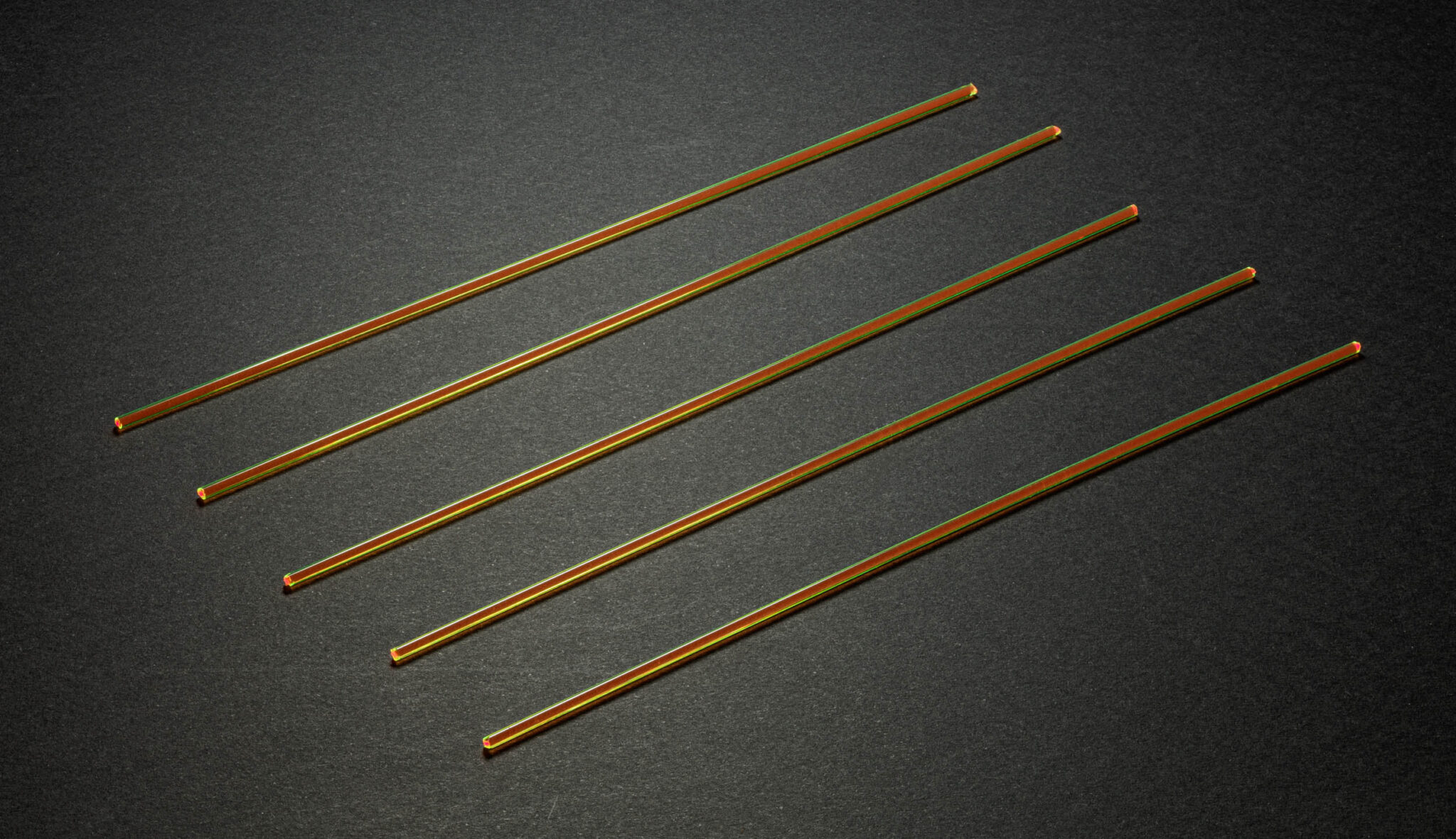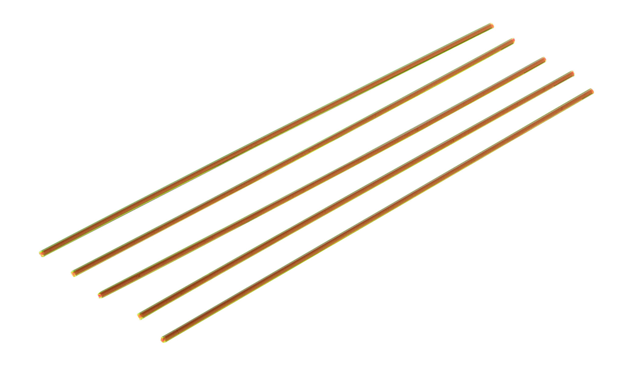 Coloris des 5 fibres optiques fluo, jaune fluo à l’extérieur, orange fluo à l’intérieur.