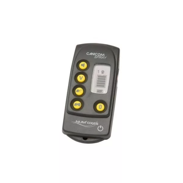 La télécommande Canicom Spray est la pièce de rechange officielle pour les systèmes de dressage à diffusion de spray Num’Axes. Une alternative sans stimulation électrique, le Canicom Spray déclenche une émission de spray (citronelle ou neutre) au lieu d’une impulsion. Cette télécommande seule vous permet de garder votre système opérationnel sans racheter l’ensemble.