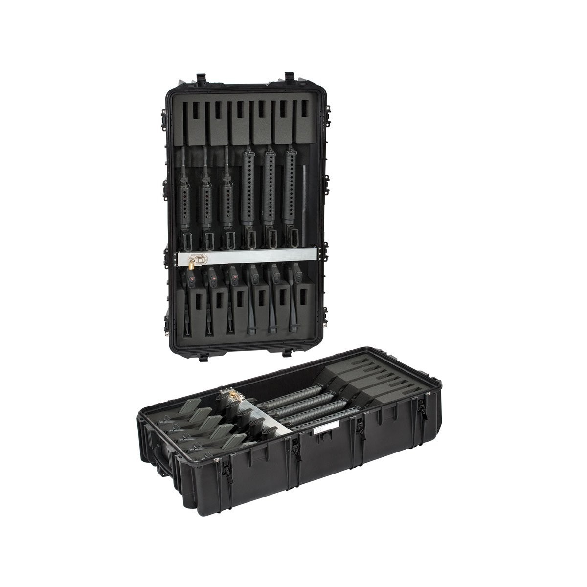 La valise 10840.B D2 noire d’Explorer Cases est une solution de transport robuste, étanche et sécurisée, spécialement conçue pour accueillir jusqu’à 6 armes longues. Grâce à sa coque épaisse en copolymère de polypropylène et à son jeu de mousses haut