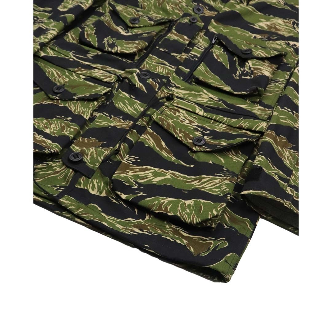 La Veste combat guerilla B110 Combat Smock Tiger Stripe Arktis est proposée dans le coloris suivant : Camouflage Tiger Stripe™ * Caractérisé par un motif distinct de bandes étroites et brossées de couleur verte, brune et noire, le camouflage « Tiger Stripe » est couramment utilisé dans le monde entier. HISTOIRE DE LA RAYURE DU TIGRE Contrairement à son homonyme, ce tigre p. Ce choix esthétique a été pensé pour s’intégrer parfaitement aux environnements d’utilisation prévus.