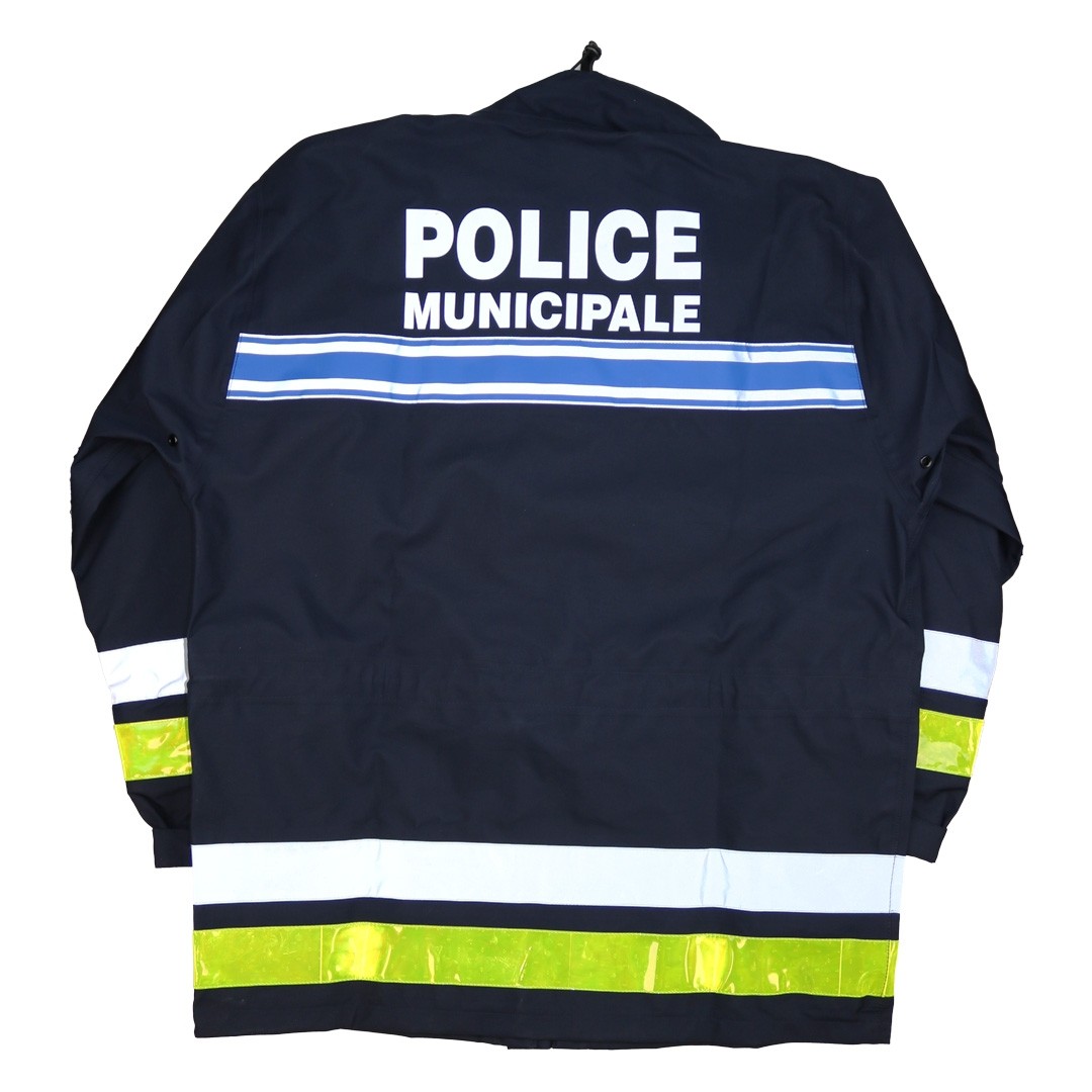 Légère et compacte, elle se range facilement dans un top case grâce à son sac de rangement Roll-Top imperméable . VENTE EXCLUSIVE À L’ADMINISTRATION Ce produit est réservé exclusivement aux administrations, collectivités territoriales et services officiels. Toute commande doit être effectuée dans le cadre d’un usage professionnel réglementé. Points forts Veste pluie motocycliste dédiée à la Police Municipale Protection efficace contre la pluie et le vent Conception tri-laminée légère et compacte Compatible avec les tenues motard été et hiver Facilement transportable dans son sac étanche Caractéristiques principales Veste pluie légère 3 couches Coupe-vent, imperméable et respirante Fermeture centrale à glissière double sens pour accès au ceinturon Rabat tempête à boutons-pression Col haut conçu pour un port proche du casque moto Passage dédié pour le câble airbag Pochette poitrine prévue pour un sifflet Poignets réglables avec fermeture auto-agrippante Manches équipées d’un manchon étanche anti-infiltration Dos long couvrant largement la zone entre la selle et le motocycliste Marquages « Police Municipale » réfléchissants Fermetures Éclair avec tirettes moulées utilisables avec des gants Cordons de serrage à la taille et au col Sac de rangement Roll-Top imperméable fourni Coutures étanches Poids avec sac : 900 g Coloris : bleu marine foncé Tailles disponibles : XS à 4XL Longueurs disponibles : court (Short) ou long Matériaux 64 % polyester 15 % polyuréthane 21 % polyamide