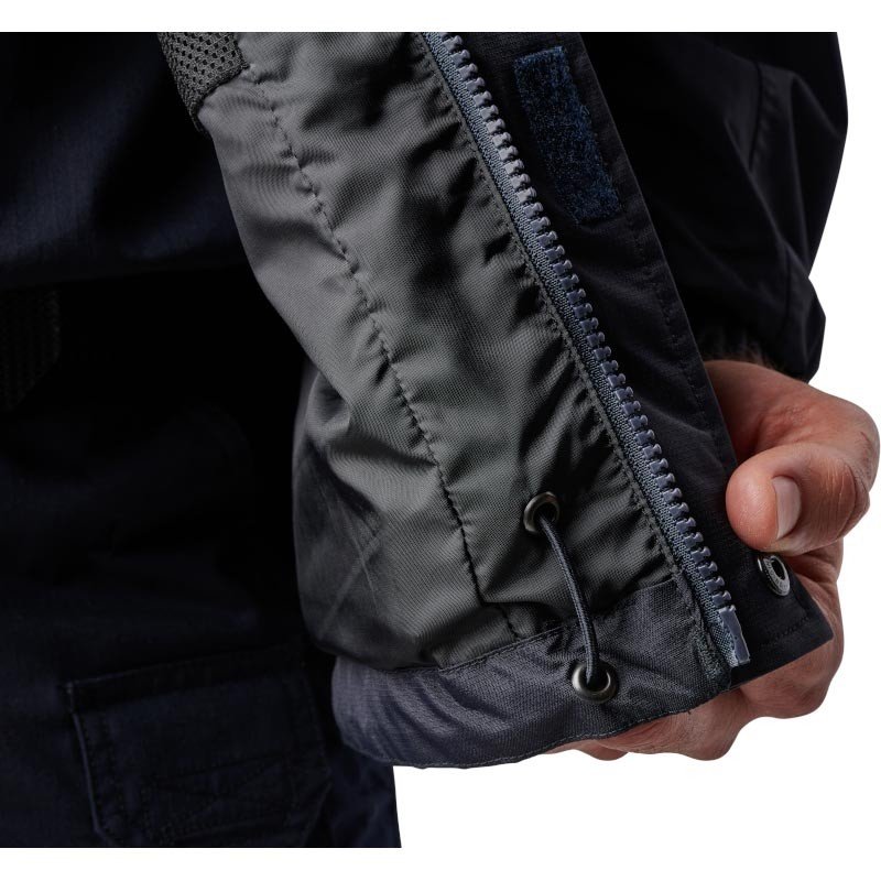 0 combine une nouvelle capuche fixe, des manchettes élastiques actualisées, un rabat-tempête protecteur et un protège-menton intérieur pour se protéger du vent et de l’eau. Le système breveté 5.11® Quixip® sur les côtés permet un accès rapide à votre ceinture de service, tandis que le cordon de serrage interne maintient votre équipement de pluie en place. Elle est discrète au quotidien et pratique en service grâce à ses panneaux d’identification et à ses fonctionnalités tactiques.